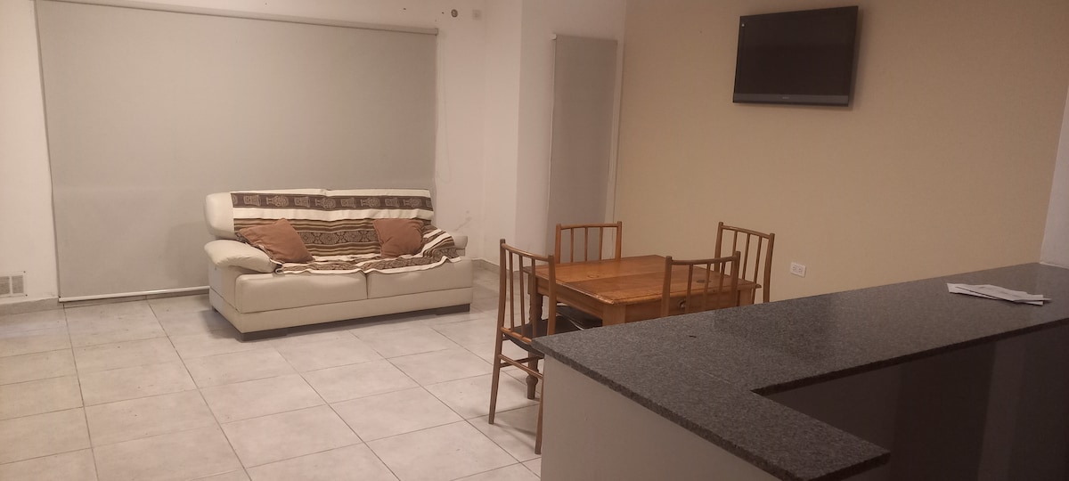 Moderno y cómodo departamento con dos habitaciones, cocina equipada, baño completo, living-comedor con TV, patio con parrilla y cochera propia. Ideal para parejas, familias o viajes de trabajo. Zona segura y de fácil acceso. Wi-Fi, calefacción y todos los servicios incluidos para una estadía confortable.