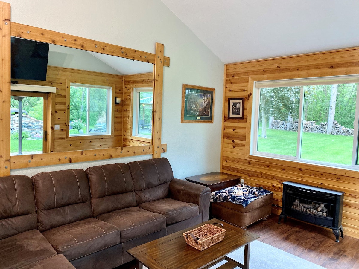 Perfecto para aniversarios, cumpleaños o simplemente una escapada rejuvenecedora. Descubre por qué a los habitantes de Minnesota les gusta el invierno mientras te relajas en el jacuzzi de 104* o en la sauna de 190* mientras contemplas los árboles. ¡Incluye una cama tamaño king, sofá cama, batas exuberantes, zapatillas y numerosos servicios para que disfrutes! Esta unidad está adosada a una casa más grande (que está disponible para alquilar). Sin embargo, solo un grupo se aloja en la propiedad a la vez, ya sea alquilando este espacio más pequeño o alquilando toda la casa.