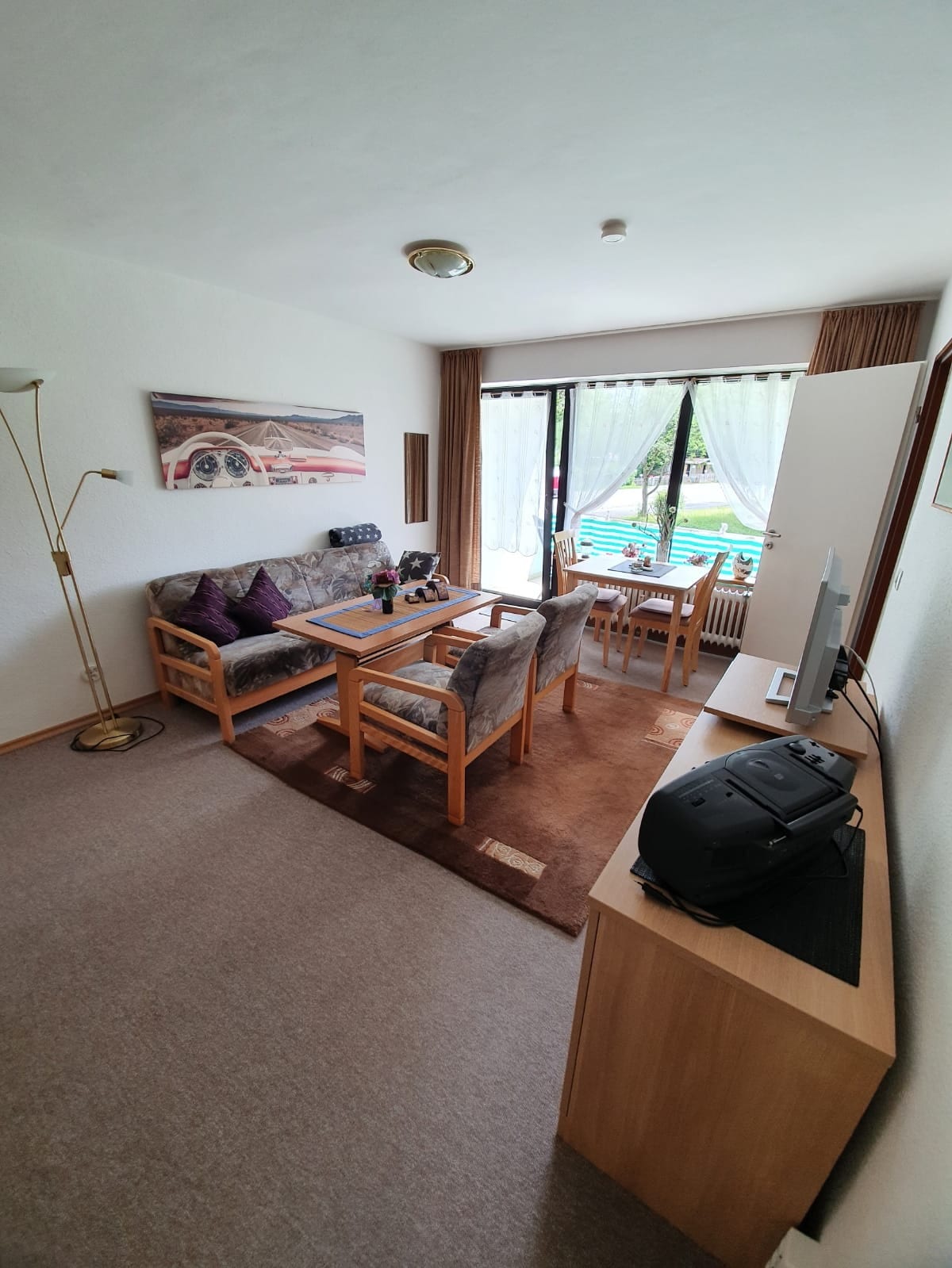 Bienvenida en el apartamento de vacaciones. El apartamento tranquilo y soleado para 2 personas cuenta con salón, cocina, pasillo, baño y balcón. El dormitorio de la sala de estar está equipado con camas individuales en el armario, cortinas opacas, TV, comedor y una acogedora zona de estar. La Cocina esta totalmente equipada El baño cuenta con bañera con función ducha. El mobiliario de jardín se encuentra en el balcón. Nota: Ventilación, así como acceso al balcón a través de la puerta de la cocina.