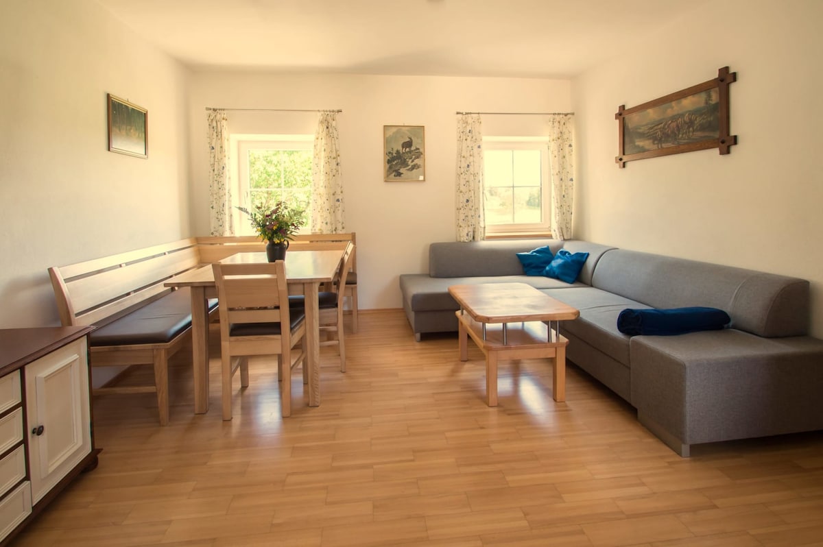 En las faldas del cerro Dreisessel, en el sur del Bosque Bávaro, se encuentra la histórica granja «Lindensalettl», construida en 1804. Reformado en 2023, ahora ofrece una encantadora casa de vacaciones en el bosque bávaro para parejas y familias. Con terraza y jardín privado para tu uso exclusivo, la casa ofrece un espacio para descansar y relajarse en un entorno natural y tranquilo. Las rutas de senderismo alrededor de Dreisessel y la estación de esquí de Hochficht comienzan justo en la puerta. Una verdadera escapada de la cotidianidad.