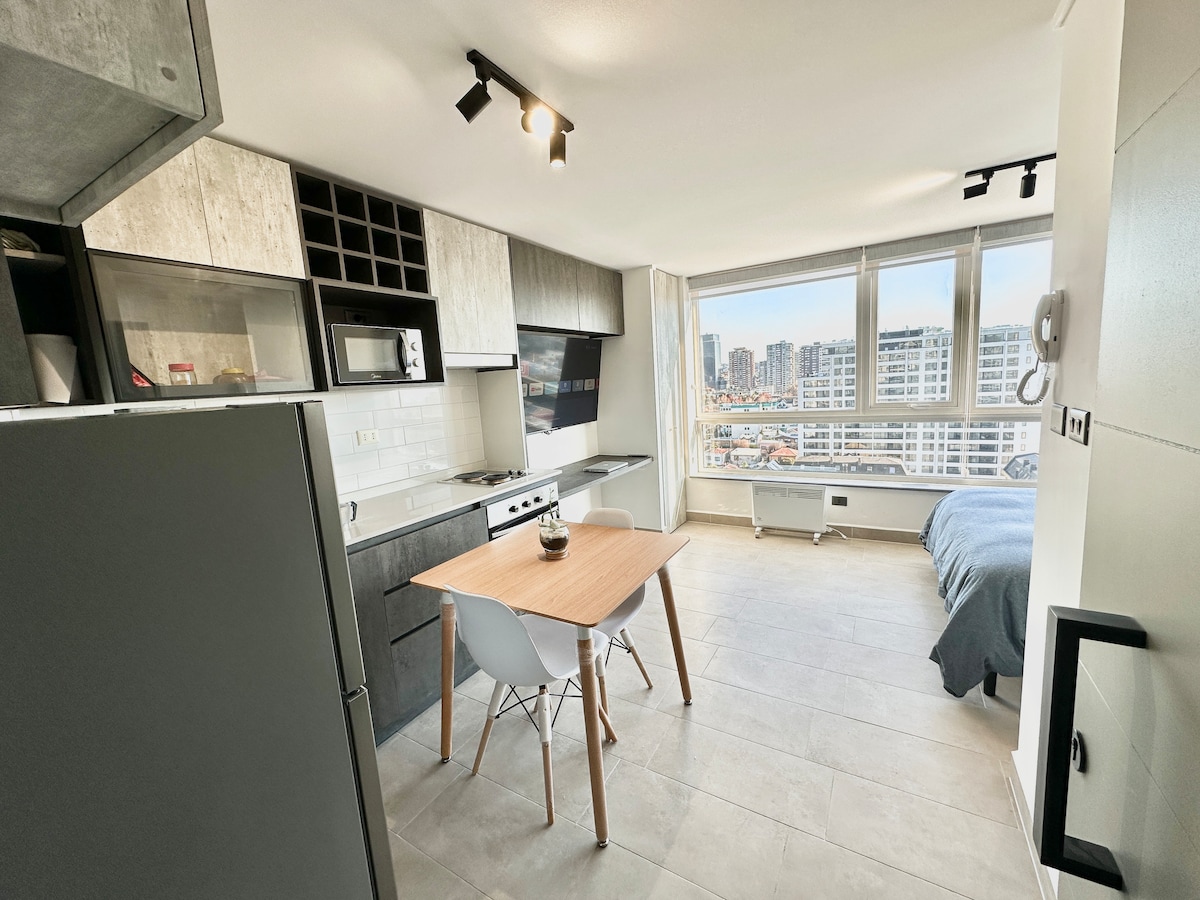 Disfruta de nuestro estudio en el corazón de Concepción, cerca de universidades, transporte, centros comerciales y restaurantes. Ideal para dos personas, el departamento incluye cama de dos plazas, cocina equipada, baño con tina, smart TV y mesa para trabajar/comer. El edificio ofrece gimnasio, sala de coworking, sala de entregas, lavandería, quinchos panorámicos y salón gourmet. ¡Conveniencia y confort en una ubicación central! No hay estacionamiento particular de la propiedad.