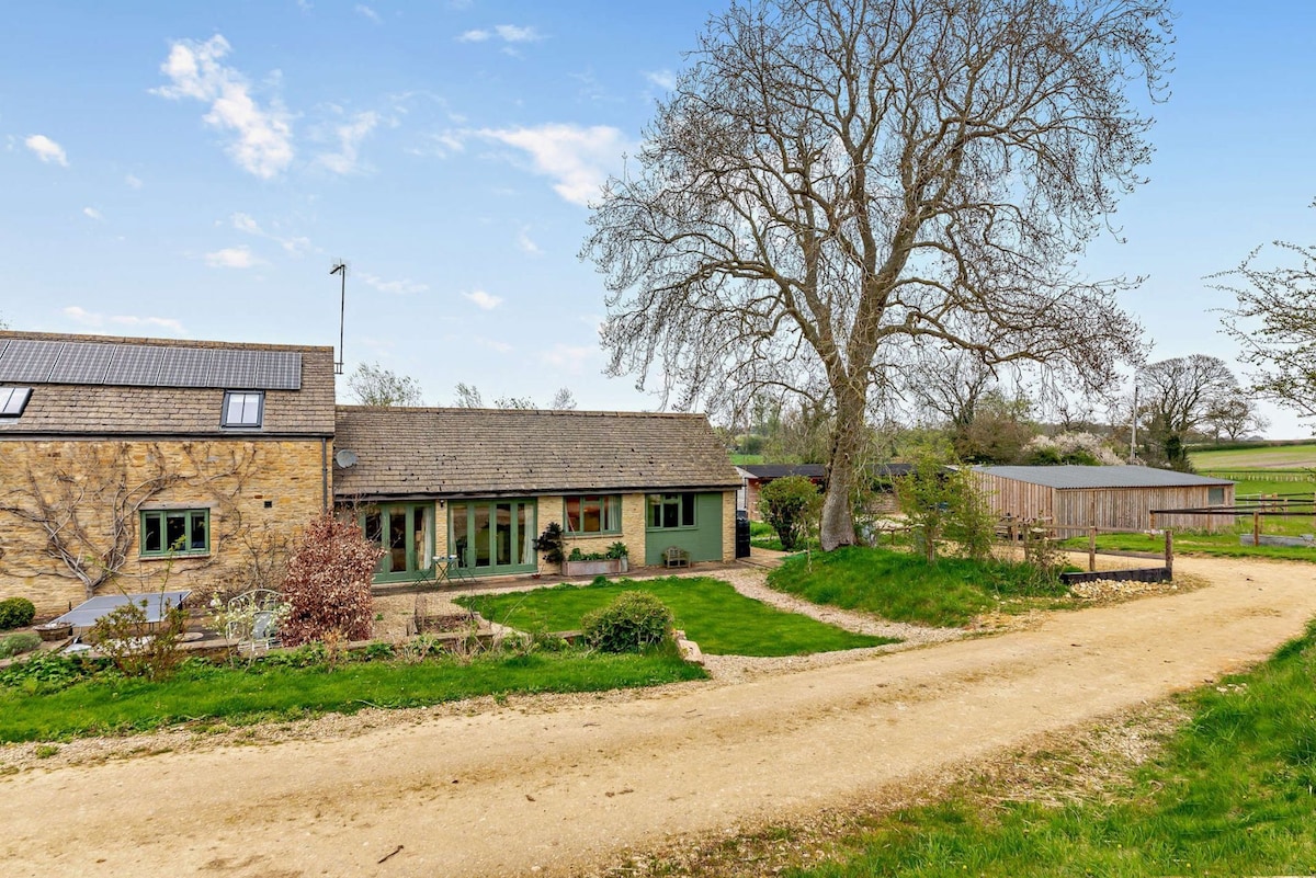 Disfruta del encantador entorno de este lugar romántico situado en una granja en funcionamiento en la frontera de Oxfordshire/Northamptonshire con vistas rurales y excelentes paseos por la granja. Tenemos caballos, ganado, pollos y 450 acres para disfrutar. Muchos sitios fantásticos cerca, como el Palacio de Blenheim, Soho Farmhouse, el castillo de Warwick, Silverstone, Upton House y Diddly Squat (30 minutos). Despiértate con hermosos amaneceres, una gran vida silvestre y una vista amplia. Incluso puedes ver los 14 ciervos salvajes que deambulan por la granja.
