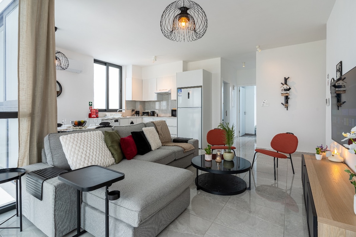 ¡Te damos la bienvenida a nuestro apartamento chic y moderno de 1 dormitorio! Este apartamento nuevo y diseñado con buen gusto ofrece un hogar acogedor y elegante lejos de casa en un barrio tranquilo, a pocos minutos en coche del centro de Larnaca y a poca distancia a pie de la playa. Disfruta de la comodidad de una elegante sala de estar y relájate en el balcón privado con preciosas vistas laterales al mar, perfecto para un café por la mañana o una noche relajante. Ideal tanto para escapadas cortas como para estancias prolongadas.