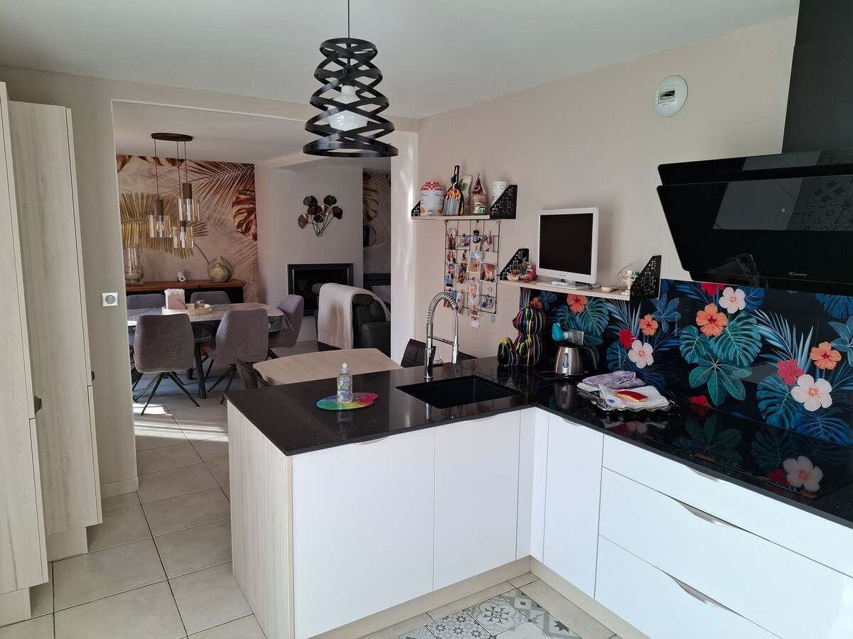 Nous vous invitons à découvrir notre maison de ville moderne dont le projet a été réalisé par la société AKS Design, de nombreux équipements sont à votre disposition pour vous offrir un moment de détente et de bien-être à seulement une dizaine de minutes en voiture de Disney et la vallée Village. Nous pouvons organiser: arrivée romantique où répondre à toute demande particulière. N’hésitez pas à nous consulter.