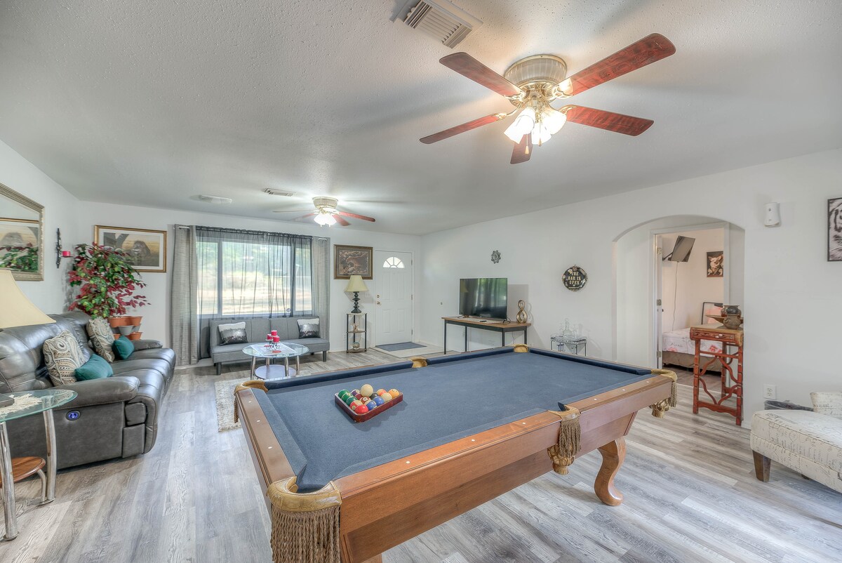 Relájate con la familia en este tranquilo alojamiento en 3 acres despejados y aislados. Tómate el café de la mañana en el porche trasero y contempla el amanecer. Disfruta de la puesta de sol en el porche delantero. Los eventos son bienvenidos, pero se avisará con antelación y se generarán precios adicionales. Envía tus consultas al anfitrión antes de reservar.