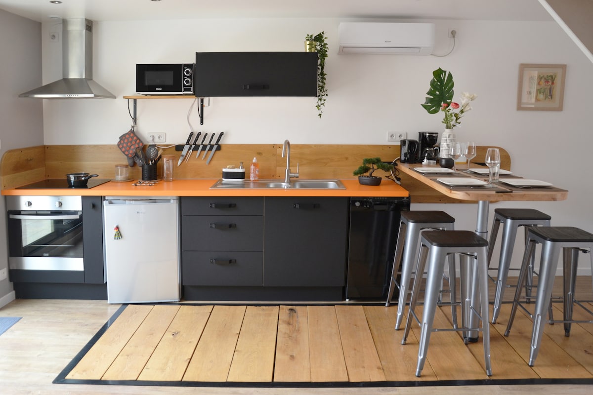 Nuestra casa es un antiguo granero del siglo XIX. Se compone en un solo volumen, con un dormitorio en altillo. Su decoración parece un pequeño guiño a los castillos de los alrededores . Nos encontramos entre Montrichard y Saint-Aignan , y está a unos quince kilómetros del castillo de Chenonceaux y del zoológico de Beauval . (No se proporcionan sábanas. Gracias por su comprensión)