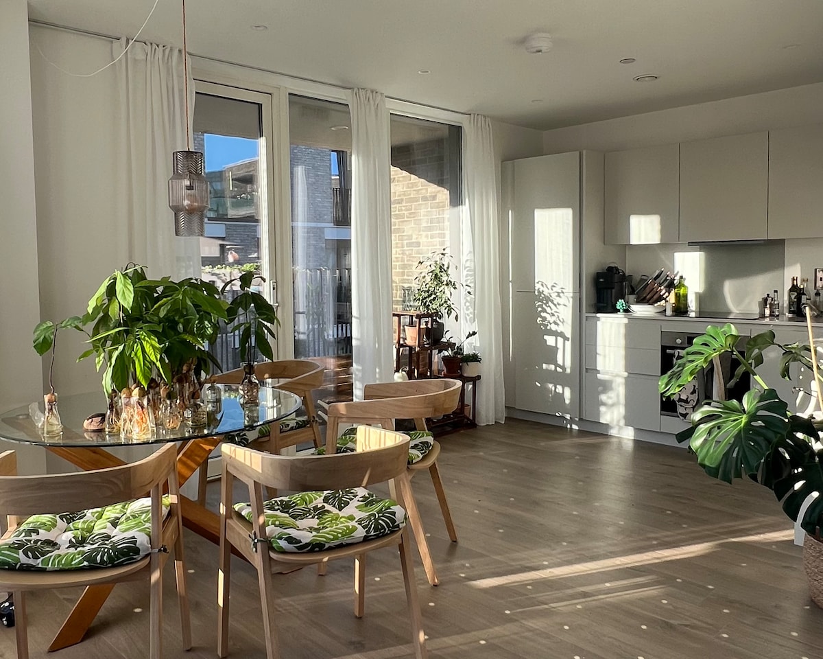 Te doy la bienvenida a mi elegante alojamiento, diseñado con esmero por un arquitecto. Diseñado con piezas únicas, este piso está lleno de luz natural y ofrece un refugio tranquilo y cómodo lejos del bullicio de Londres. Disfruta de una cocina totalmente equipada, ropa de cama de calidad hotelera y un ambiente tranquilo. Situado en E3, cerca del canal para pasear y con muchas opciones de transporte para acceder rápidamente a la ciudad. Experimenta Airbnb como se imaginó en una casa elegante y no en un espacio sin alma lleno de Ikea.