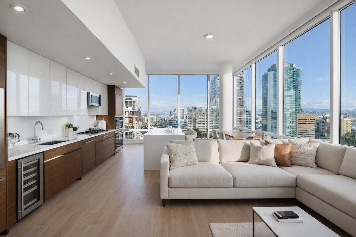 Apartamento de lujo de gran altura en el corazón del centro de Long Beach. A pie del Centro de Convenciones, la playa, el Pike Outlet, Shoreline Drive, increíbles restaurantes y mucho más. Perfecto para una escapada de fin de semana, viaje de negocios, vacaciones o como cómoda base de operaciones mientras exploras todo lo que DTLB tiene para ofrecer. Acogedor apartamento, a pie de la playa: un refugio perfecto para relajarse y revivir. Además, tendrás acceso a todos los servicios: piscina, jacuzzi, sauna y gimnasio. Aparcamiento gratuito incluido para un vehículo durante tu estancia.