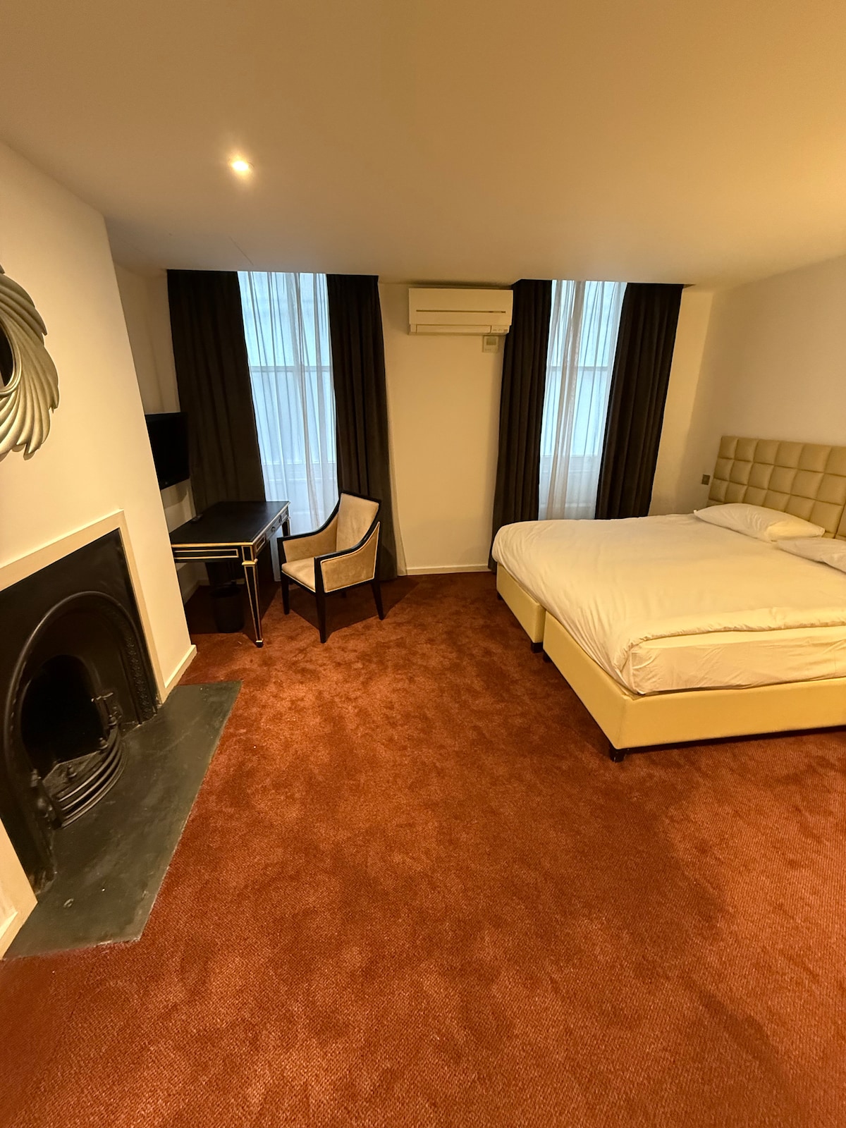 La habitación doble ejecutiva en 54 Queen's Gate está climatizada y amueblada con camas con muelles ensacados y ropa de cama de algodón 100 % egipcio. La habitación incluye artículos de tocador de lujo, ducha de hidromasaje, enchufes de pared con conexiones USB directas, caja fuerte en la habitación y teléfono de línea directa, así como agua embotellada gratuita, cafetera y tetera, y un televisor inteligente interactivo con Chromecast. Tamaño de la habitación 10 m².