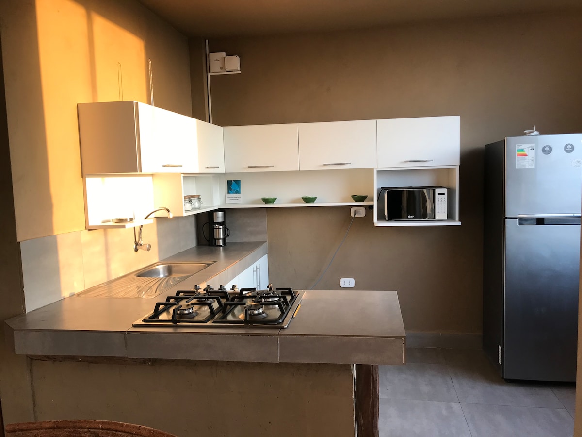 Somos una casa nueva!! ubicados en segunda fila en Las zona de Las Pocitas, Mancora bajo el concepto de barefoot luxury. La casa tiene un dormitorio con una cama king en el primer piso y un altillo con dos camas de plaza y media, baño con ducha al aire libre, cocina, piscina, terraza, area de fogata y area de hamacas. Contamos con una salida privada a la playa a 300 metros de distancia. Somos pet friendly y en la propiedad también vive una gatita llamada tigrita.