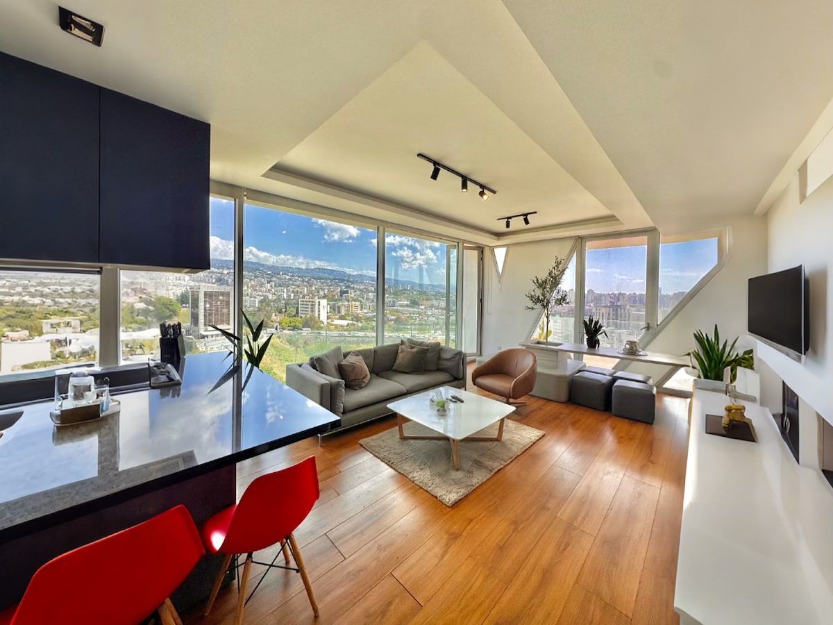 Exclusive luxury residence in Sin El Fil, featuring panoramic views, and floor-to-ceiling windows, perched on the 11th floor. Designed for guests seeking a premium experience with the privacy of a home. Located in the unique and iconic building of The Cube, just 3 minutes from Habtoor Grand Hotel Beirut. Set in a modern and secure building, this fully equipped 2-bedroom apartment is ideal for families, friends, or colleagues.