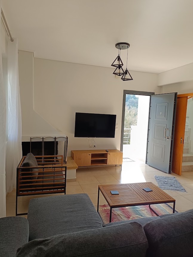 Casa de huéspedes con piscina compartida ubicada entre Corinto y la ciudad de Loutraki. A solo 50 minutos de Atenas. Muy cerca de restaurantes, supermercados, playas, etc. - Acomoda a 5 personas en total, incluidos los bebés. Un dormitorio con cómoda cama doble (pueden dormir 2) y sala de estar independiente con un sofá extensible y un sofá individual (capacidad para 3 personas) un baño y una cocina totalmente equipada para cocinar. También se incluyen TV inteligente y aire acondicionado.