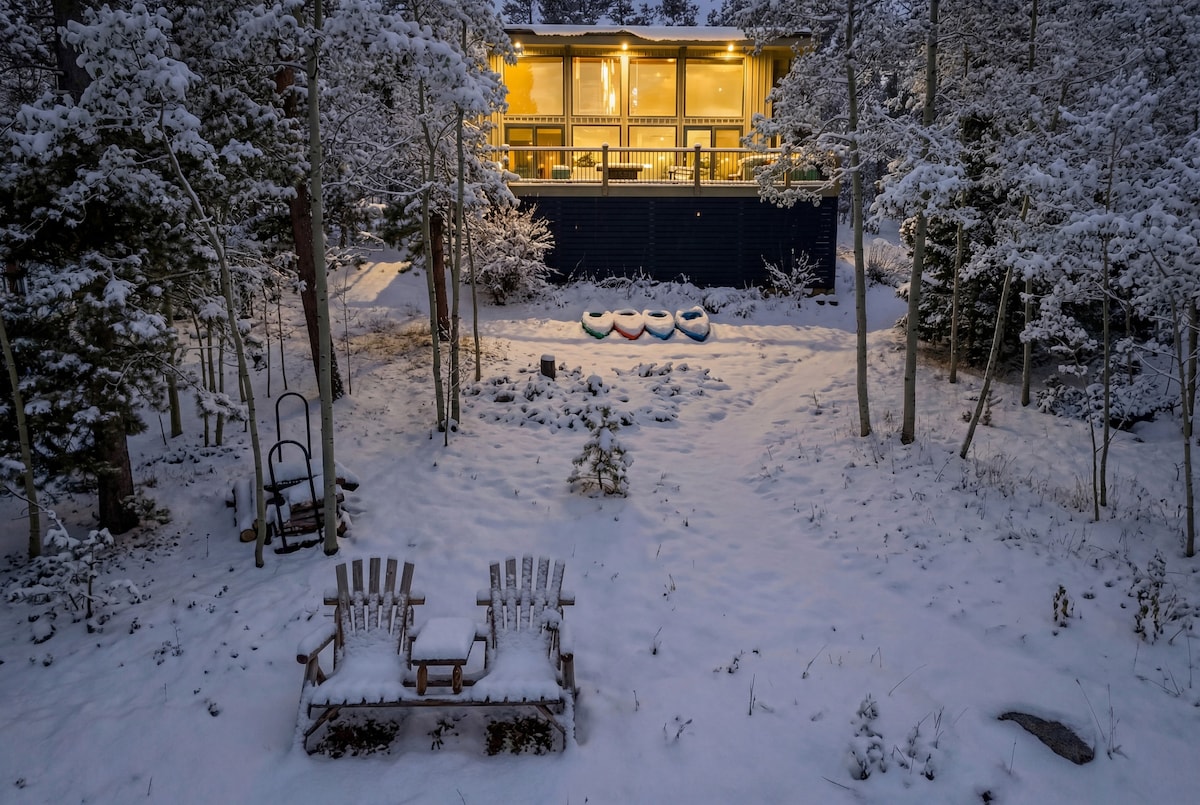 Permiso n .º24-106357 Te sentirás a mundos de distancia en estos 2 acres ondulados. La cabaña es una escapada de montaña perfecta para disfrutar de una paz tranquila, pero a solo 3 minutos de la I-70, restaurantes, tiendas, senderos y belleza. El gran solárium es la joya de la corona de la cabaña; no se entromete en la naturaleza, sino que está construido pensando en la naturaleza. Te coloca en medio de un paisaje boscoso con grandes ventanales a su alrededor que te hacen sentir como si estuvieras fuera en la nieve, pero manteniéndote cálido y acogedor en el interior.