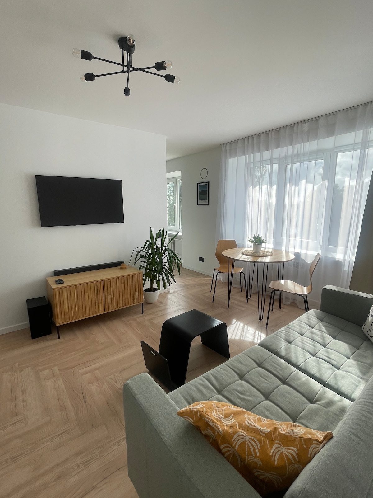 El apartamento es una sala de estar moderna que es cálida y acogedora. Totalmente reformado con altos estándares y muchas características elegantes. El apartamento te ofrece un entorno que se siente como en casa: seguro, luminoso y simpático. El apartamento está situado en el centro de Rezekne, con todos los servicios cerca. Al estar en la tercera planta, el apartamento no sufre de ruido de carretera, pero permite unas vistas estupendas del ajetreado centro de la ciudad. El teatro, los restaurantes y la universidad están a poca distancia caminando.