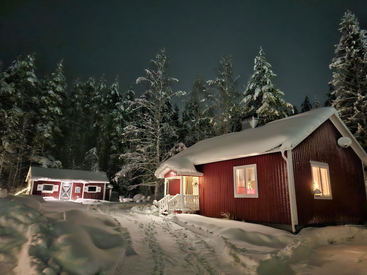 WC, ducha (sauna no para uso), nevera/congelador, aire acondicionado, cerca de la naturaleza. Duermes en un sofá cama para 2 personas en la sala de estar. No es una cocina de verdad, pero puedes hacer algo de comida en un horno microondas (puedo conseguirte una cocina de 2 fuegos para usar fuera en el porche), cafetera, hervidor de agua. Buen restaurante/pub a 100 m, río Lule con playas a 200 m, zona de compras a 2,7 km, parada de autobús a 1,9 km, aeropuerto a 8 km, ciudad de Luleå a 7 km. Recogida desde/hacia el aeropuerto 200 SEK/20 € por trayecto si estoy disponible (pregunta antes)