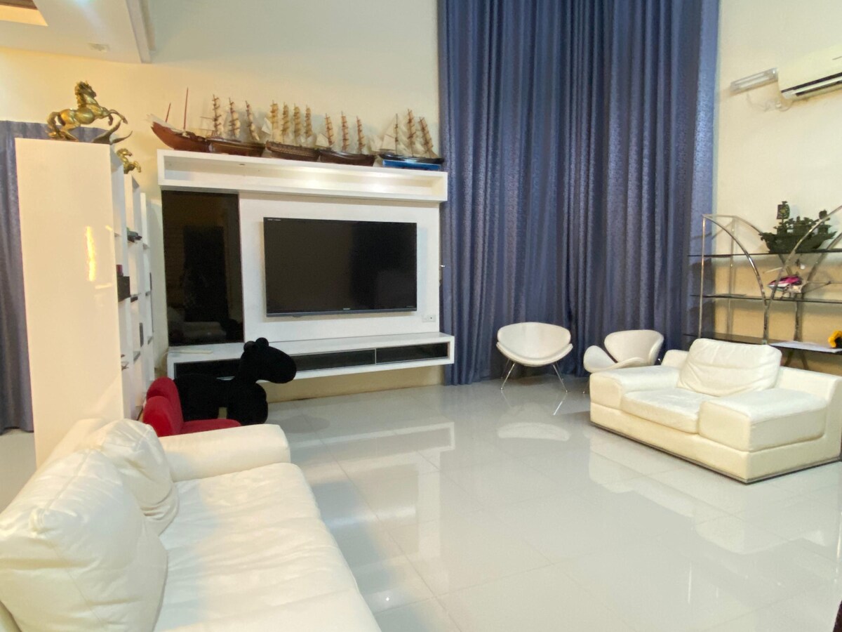 Bienvenido a nuestra amplia casa adosada situada en el corazón de la ciudad de Kulim. Disfruta de la comodidad de un hogar junto a un entorno seguro y tranquilo. Dormitorio 1 (dormitorio principal) 2 unidades de cama tamaño queen con aire acondicionado de 1,5 hp + baño privado con calentador de agua Habitación 2 2 unidades de cama individual con aire acondicionado de 1,5 hp Habitación 3 1 unidad de cama tamaño queen con aire acondicionado de 1,5 hp Sala de estar moderna y elegante - Sala de estar con aire acondicionado - Smart TV con canal MYTV