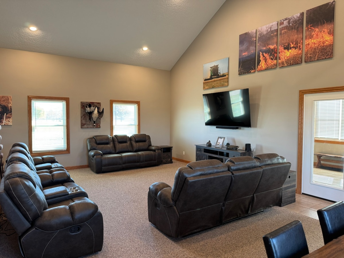 Disfruta de esta nueva propiedad ubicada en casi 14 acres de vida en el campo justo en las afueras de Emporia con este Barndominium personalizado. Esta propiedad única tiene 6 dormitorios (7 camas) y 2 baños. Nuestra casa cuenta con más de 2600 pies cuadrados de espacio para divertirse con familiares y amigos. Cada dormitorio tiene una cama tamaño king o queen para acomodar mejor a nuestros huéspedes. Ubicada a solo 4 millas del centro de Emporia, esta es tu oportunidad de escapar y disfrutar de la vida sencilla.
