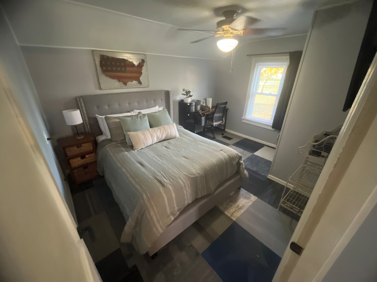 This is a renovated farmhouse with hundreds of acres behind the house looking west. The sunsets are the best you’ll ever see! You will be sharing the space with myself and my 2 dogs. a 8 year old Aussiedoodle and a 3 year old GoldenPyreDoodle. I don't have many amenities for you as I'm only renting out one room. You are welcome to use the kitchen as needed. You will have your own private full bath just a step outside of your room. This BNB is mainly to be used as a short term stay