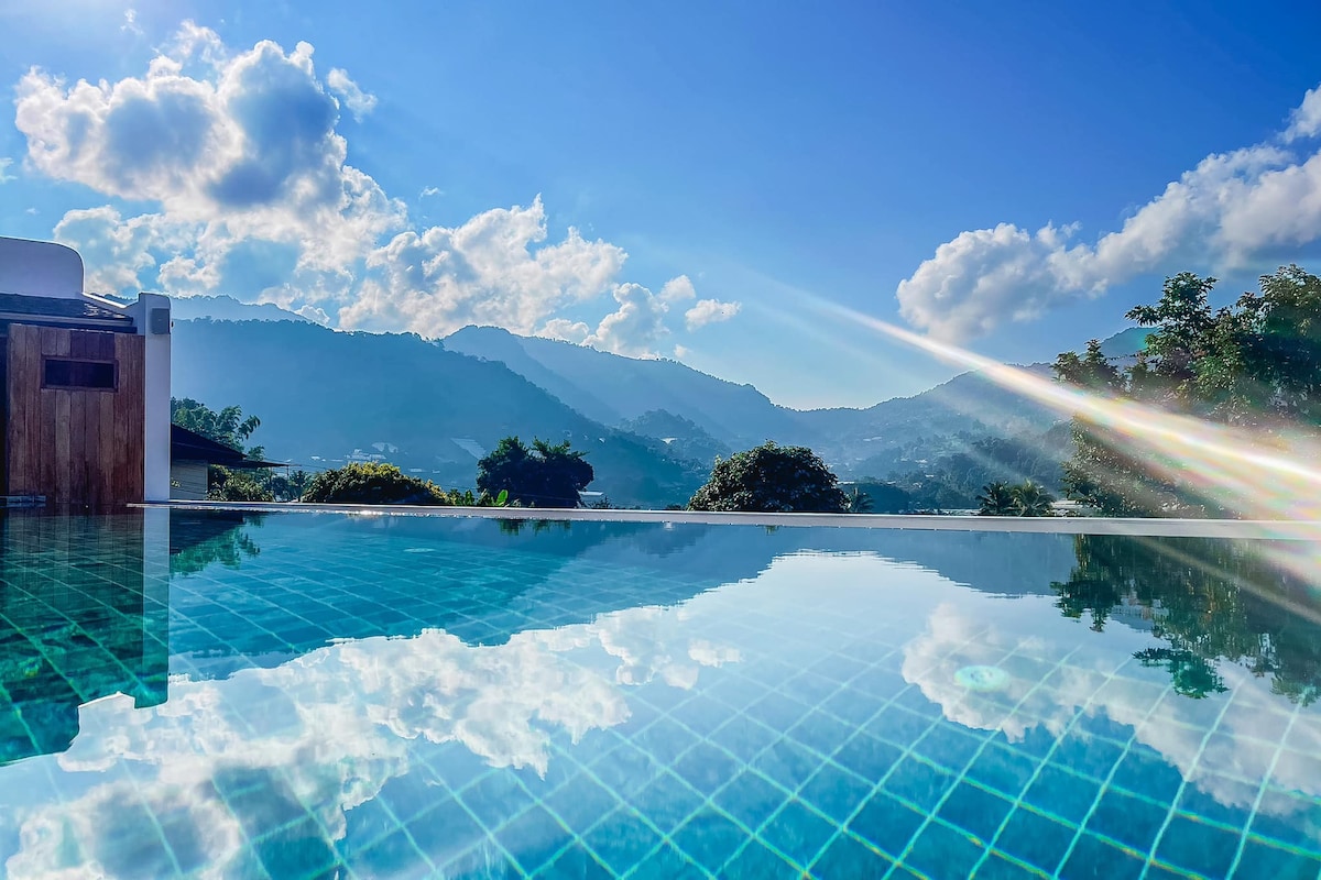🏔 🏡 Sumérgete en el ambiente natural, mirando las vistas a la montaña a través del dormitorio, escuchando el flujo del río. Deja que sea tranquilo para relajarte con comida saludable junto a la piscina, para que puedas relajarte. 🏡La habitación es una cama cómoda tamaño 🛏queen. 🪞Con muebles completos Er TV. La habitación es cálida en la habitación. Es cómodo como un hogar lejos de casa.🏡 Una habitación para 2 personas ¡Gratis! Servido con 2 lugares para desayunar.🍽 ✨️Hay servicios de dueless, belleza, spa 🚕y servicio de traslado desde el aeropuerto y atracciones turísticas en Mae🛩 Rim o según las necesidades del cliente.