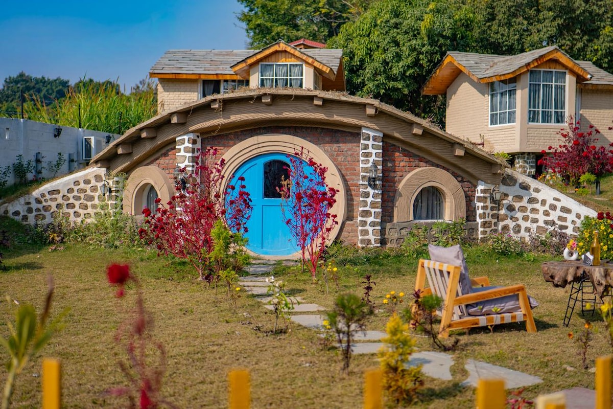 Alójate en una casa única de estilo hobbit en medio de la naturaleza, perfecta para una escapada tranquila con amigos, familia o tu pareja. La propiedad cuenta con piscina, un espacio abierto para relajarse y una acogedora zona de hoguera para disfrutar de preciosas veladas bajo el cielo. Ideal para estancias de fin de semana, celebraciones pequeñas y amantes de la naturaleza que buscan una experiencia especial en Jim Corbett.