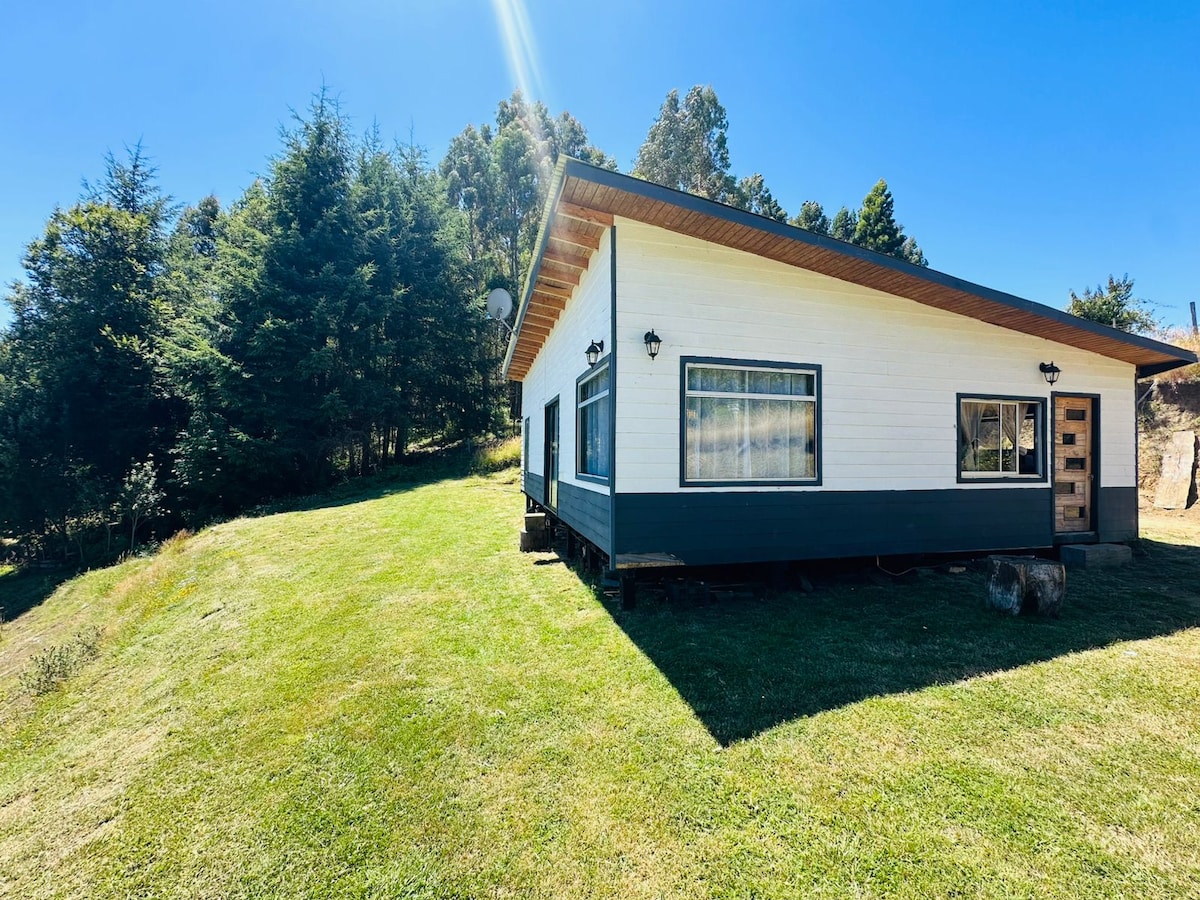 hermosa cabaña ubicada a la orilla del río, con bajada incluida donde podrán relajarse escuchando el sonido del agua, ademas mencionar que la cabaña esta completamente nueva y full equipada