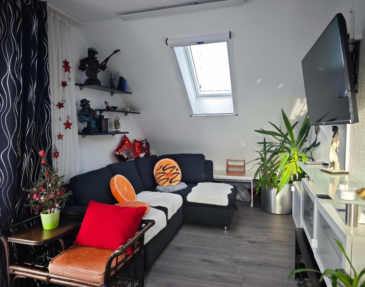 A solo 5 km de Aschaffenburg, en las estribaciones del Spessart, ofrezco un moderno y soleado apartamento de 2,5 habitaciones con entrada propia. Tiene sol matutino en la terraza de la azotea con vistas lejanas y balcón. Cama de 1,60 m, bañera, TV, WiFi y kitchenette. Aquí también viven dos gatos simpáticos. 15 minutos a la A3 y A45, pero justo en la naturaleza para relajarse. Puedes llegar a una tienda y restaurante 24 horas a poca distancia, y a 5 minutos caminando del autobús a Aschaffenburg HBF. ¡Espero con muchas ganas tu visita !