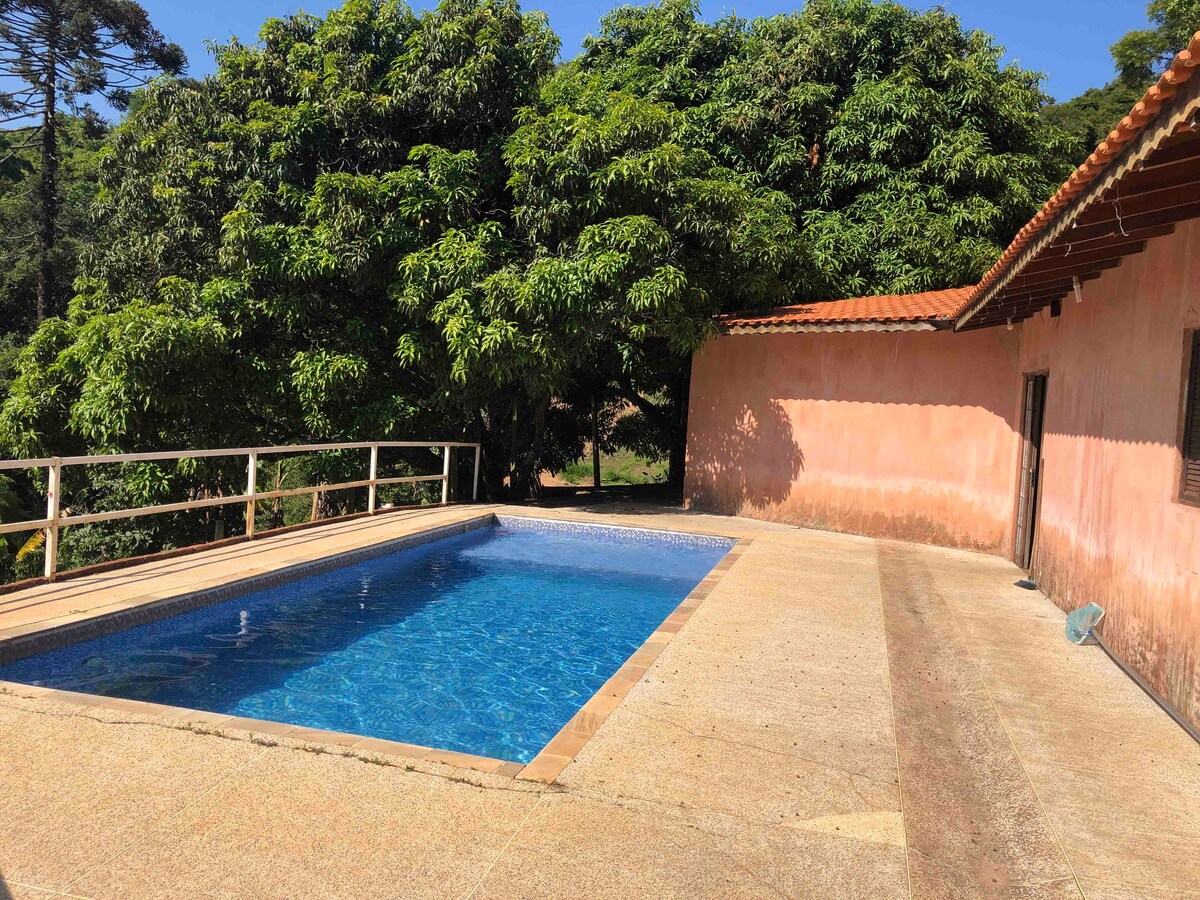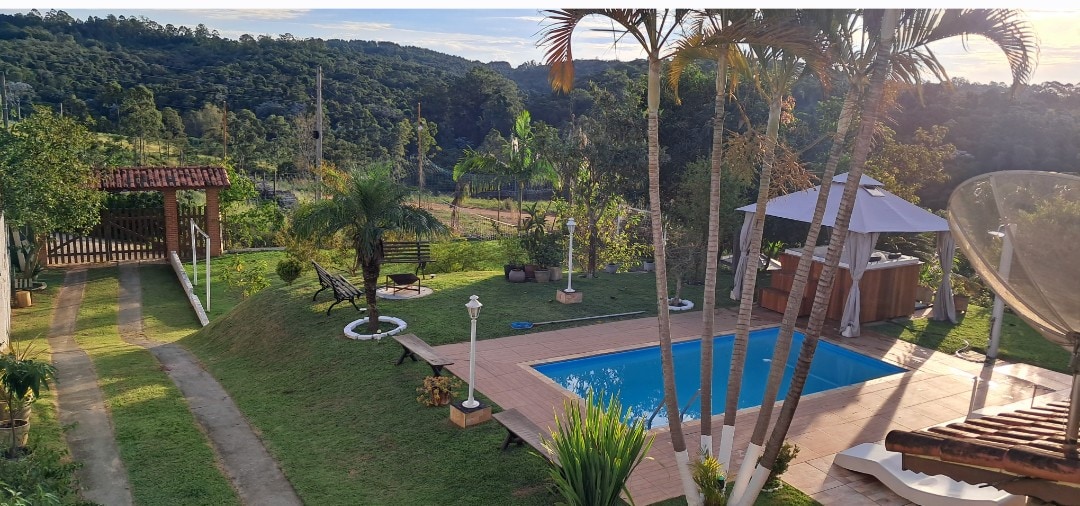 Conecta con la naturaleza con la comodidad de una finca completa con piscina, zona de ocio, zona de barbacoa, estufa de leña, campo de sociedad, amplio salón, cocina completa, dormitorios acogedores y todo esto en el itinerario del vino más famoso del interior de São Paulo. Ubicado cerca de los mejores restaurantes y bodegas: Bodega Góes: 5 minutos Cantina Tia Lina - 7 min Vila Don Pato - 10 min Quinta do Olivardo - 15 min Caracol Chocolates - 15 min