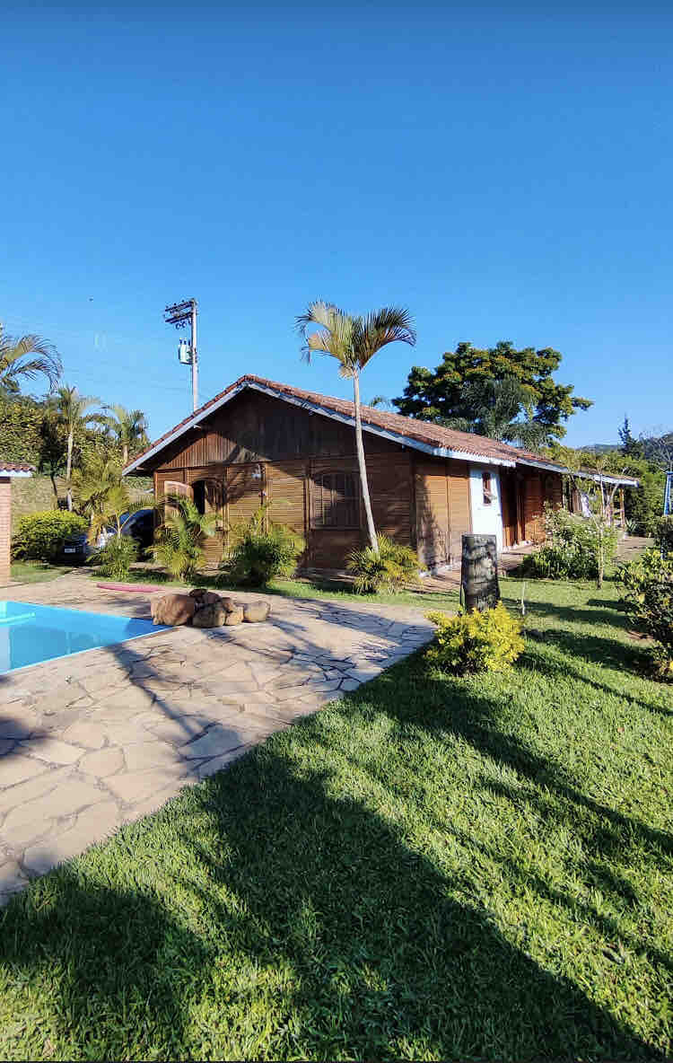 Ubicada en una región de naturaleza exuberante, con uno de los mejores climas del mundo, la propiedad se compone de una casa de campo con patio, muy acogedora, amplia y confortable, así como una casa de baños con vestuarios, piscina, barbacoa, campo de fútbol, parque infantil, capilla, espacio para eventos, lagos y senderos naturales. Un lugar perfecto para descansar, disfrutar de la naturaleza y también hacer fiestas con la familia y los amigos.