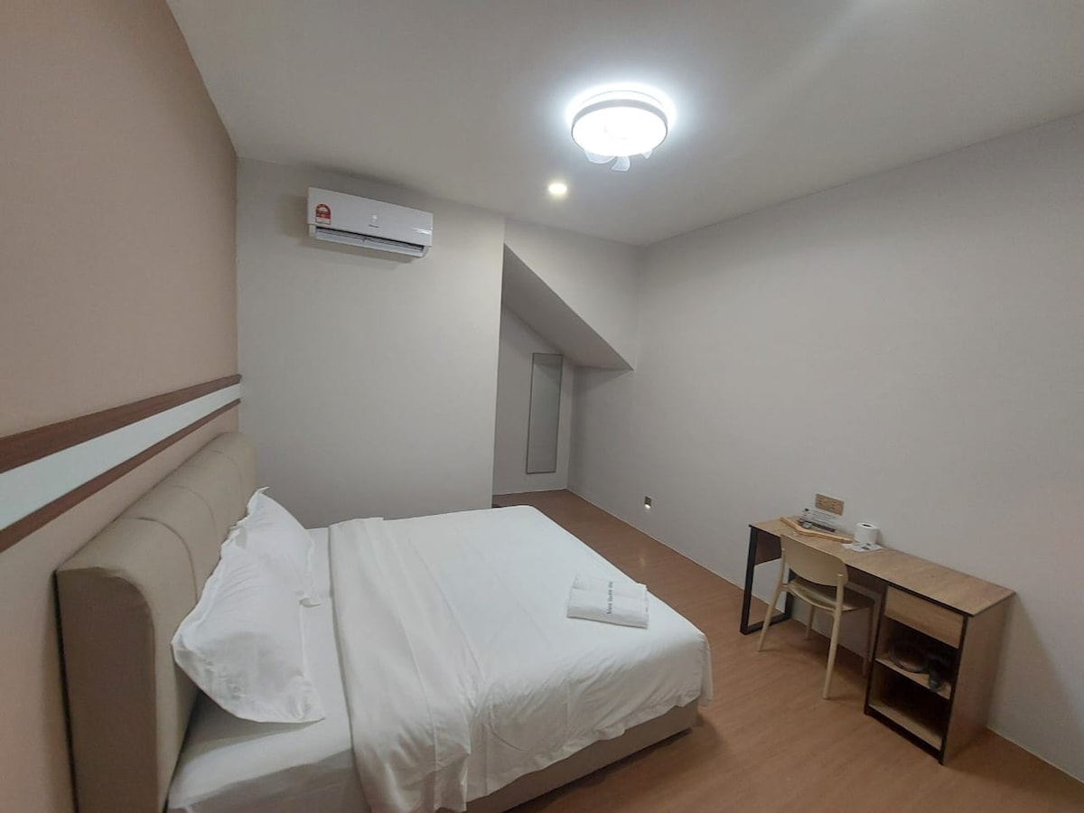Acogedora habitación individual en un espacio compartido, perfecta para estudiantes, personas que viajan solas y estancias de tránsito. Totalmente amueblado con una cama individual y TV inteligente. Aire acondicionado (recarga disponible) Baño compartido, sala de estar y cocina Cocina pequeña con utensilios básicos de cocina Salón/zona de lectura para relajarse Por la zona: MMU (0,5 km) | AEON (1,5 km) | Mydin (2 km) | Aeropuerto (2,5 km) | Peaje Ayer Keroh (5 km) ¡Precios por hora, semana y mes disponibles! ¡Reserva ahora para disfrutar de una estancia cómoda y económica!