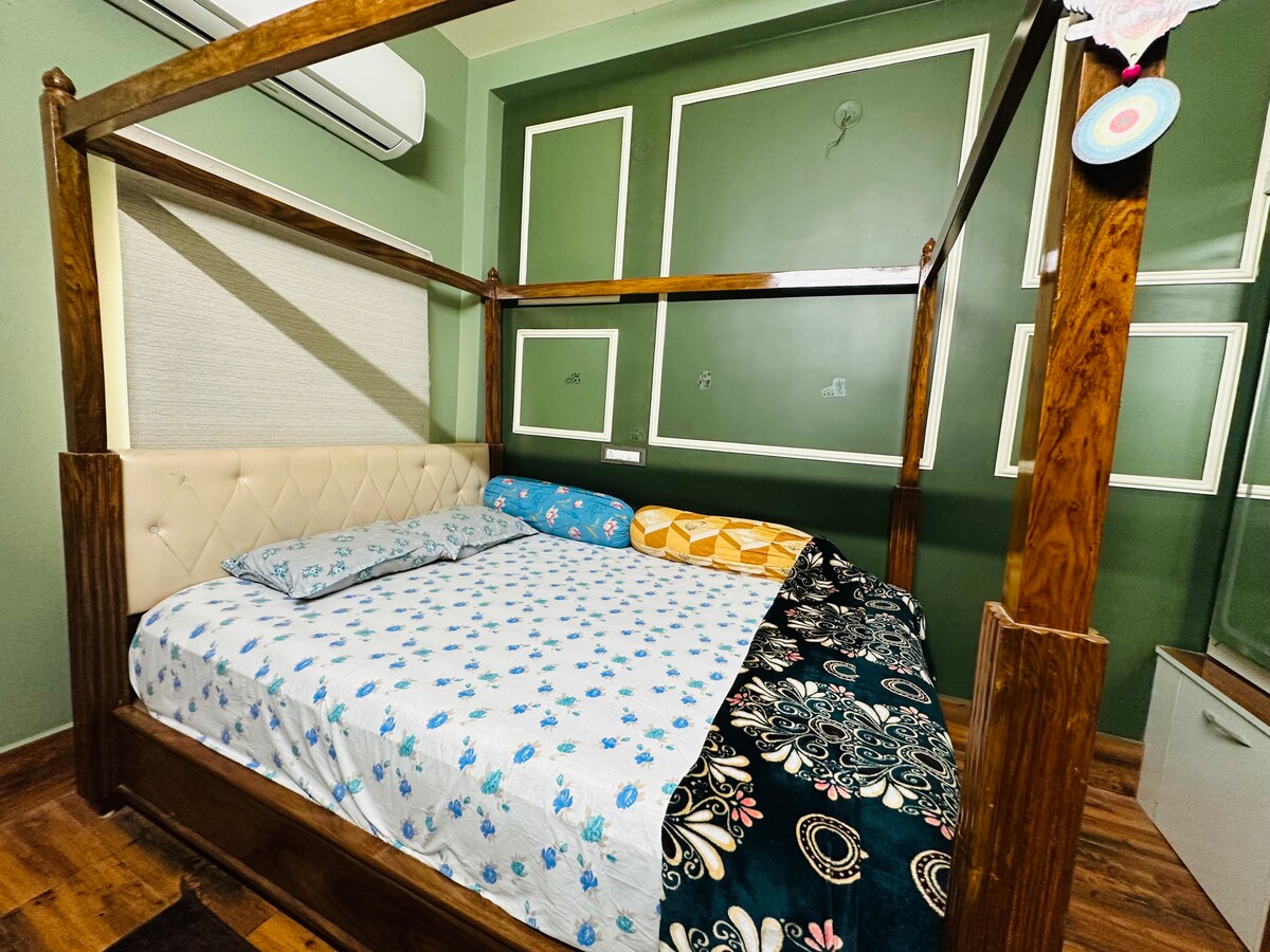 La ubicación muy buena, cerca de todo si estás c auto ¡Bienvenido a nuestro apartamento de 2 dormitorios cuidadosamente diseñado en el corazón del histórico Berhampore! Ubicado a solo 5 minutos de la parada de autobús principal, este apartamento entero ofrece la combinación perfecta de comodidad y conveniencia para familias, viajeros de negocios y turistas que exploran el rico patrimonio de Murshidabad. Disfruta de comodidades modernas como wifi, aire acondicionado en el dormitorio principal y una acogedora sala de estar.