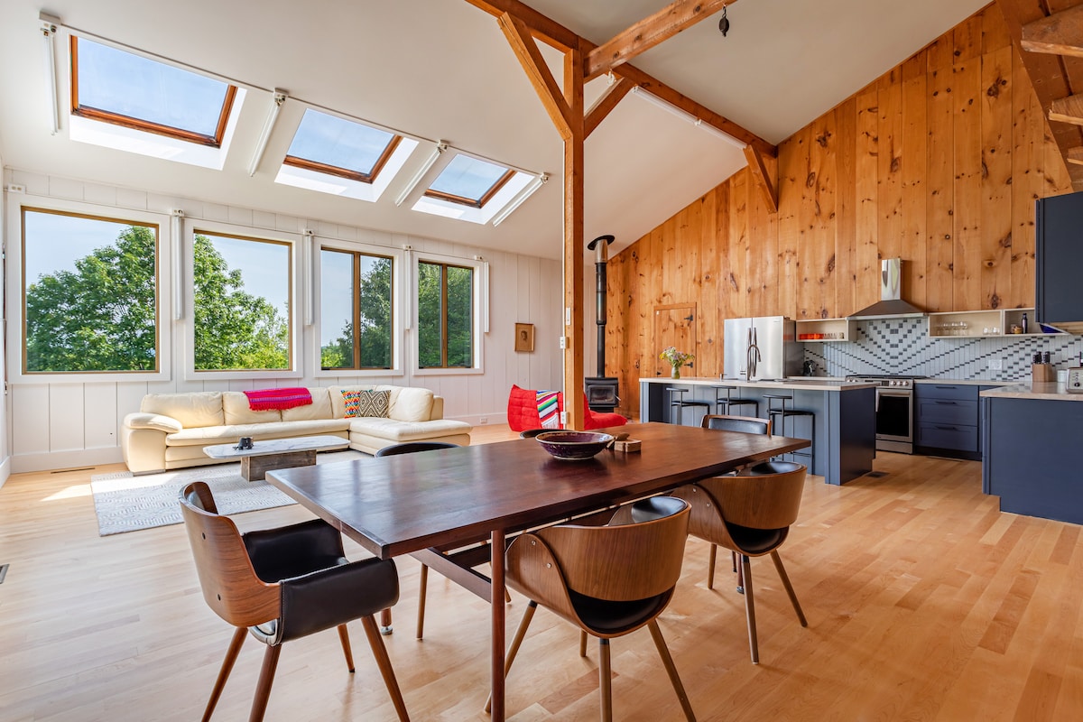 Blue Cabin es un refugio acogedor y de diseño avanzado entre la región capital y los Berkshires. Disfruta de techos abovedados de madera, una cocina verde bosque y un baño estilo spa. En el exterior, relájate en el salón cubierto con un sofá en forma de U, una parrilla de carbón y un televisor, o explora el patio trasero, donde hay un arroyo y un jardín de flores de temporada. Tranquilo, privado y perfectamente situado tanto para el descanso como para la aventura.