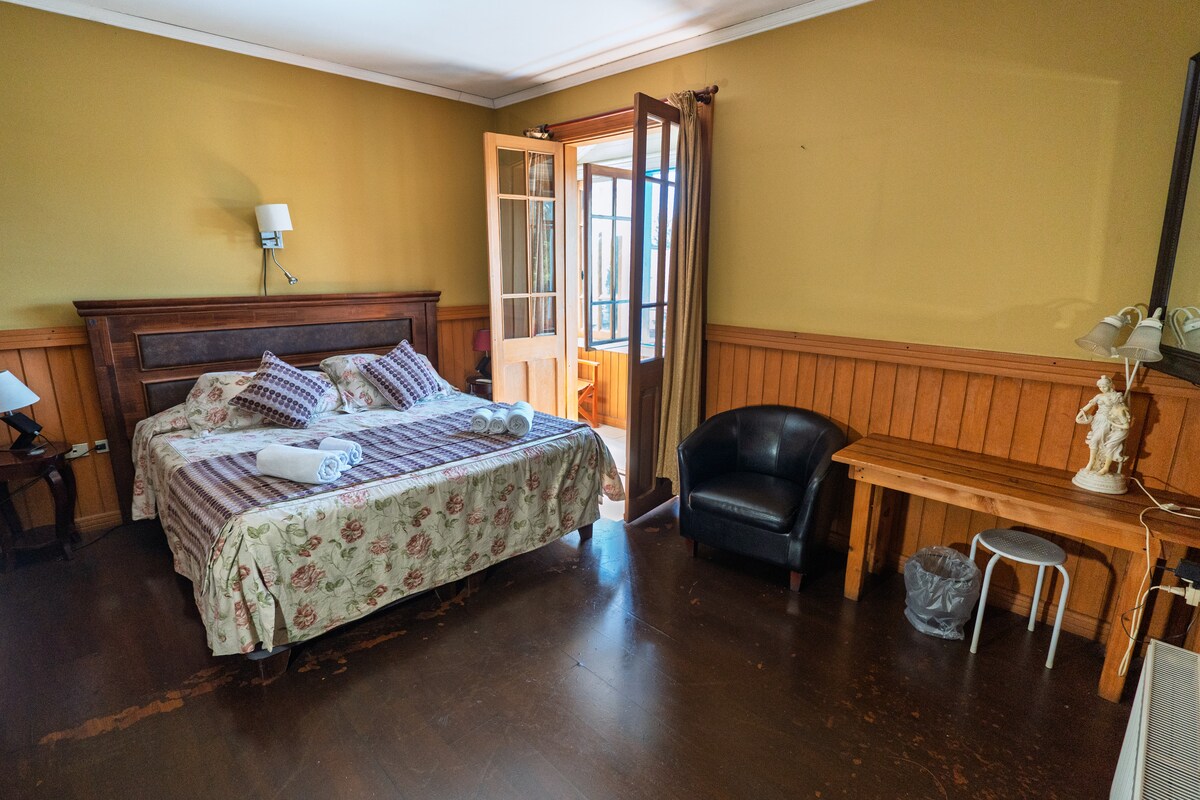 Cama matrimonial, con baño compartido dentro de la habitación, ducha , agua caliente y balcón con vista al campo, Wifi Hay espacios comunes: comedor, ruca (casa tradicional mapuche) sendero en bosque nativo, mirador