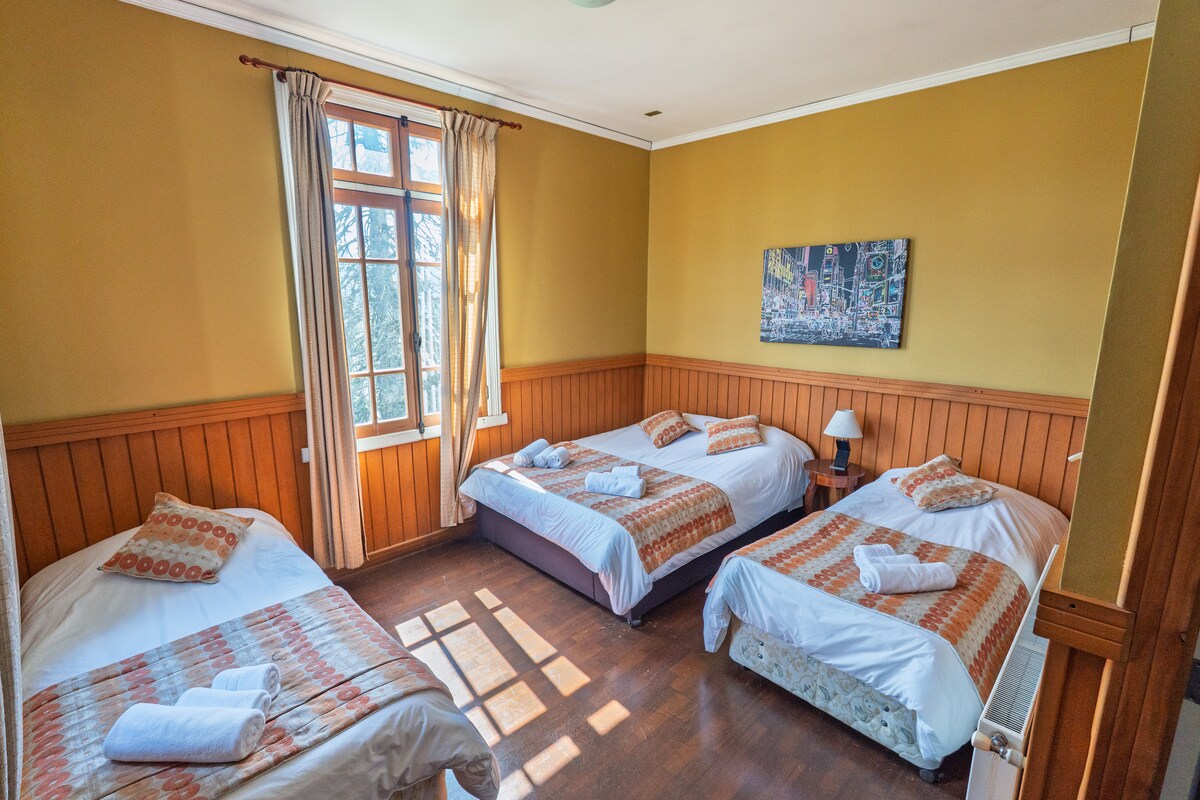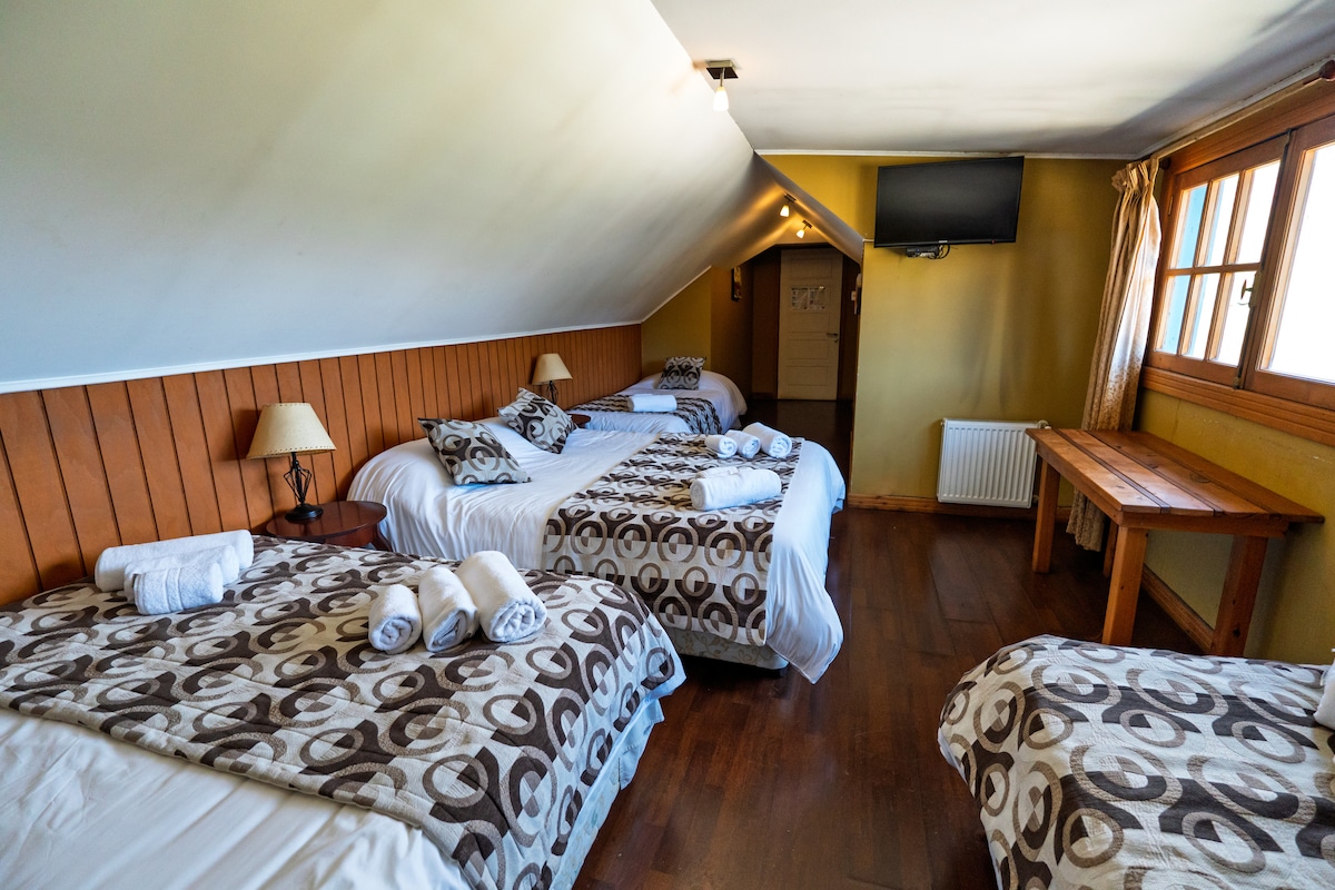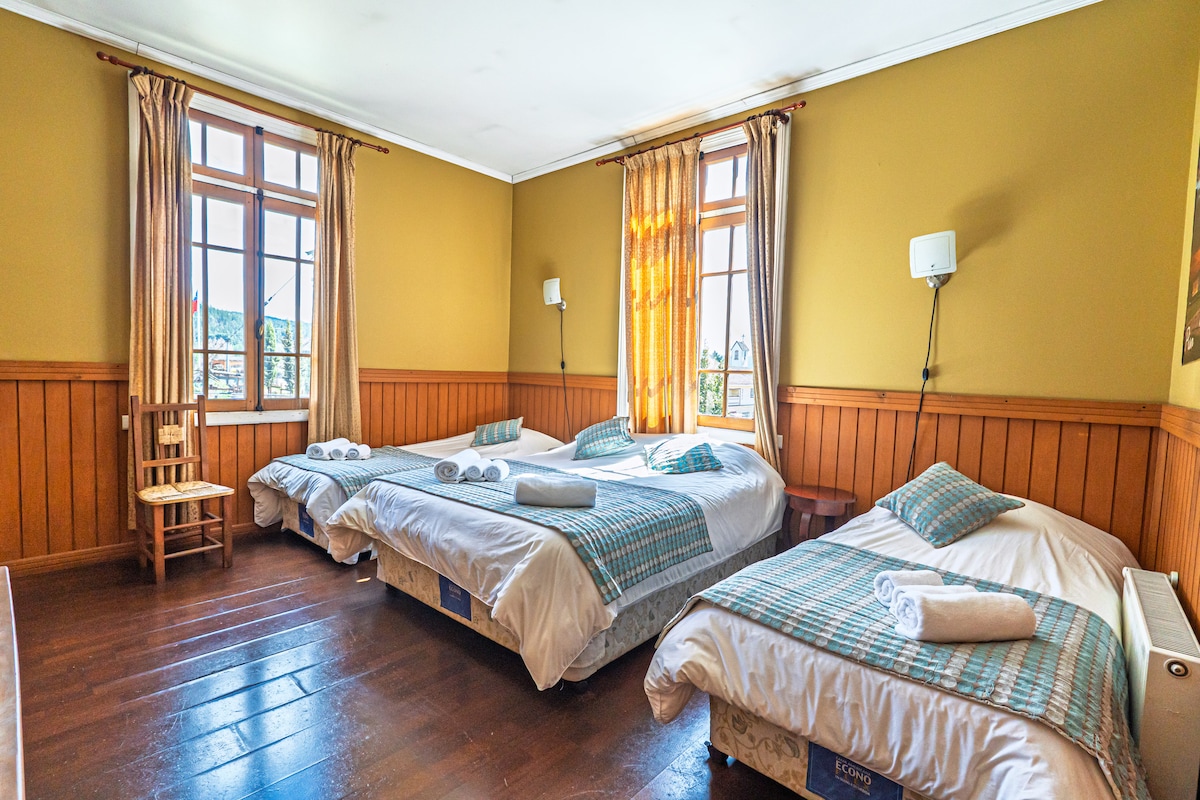 Hotel Nalcas, habitaciones de 2 a 4 personas con calefacción central, servicio de limpieza a diario y desayuno montañes incluído. Dormirás en una habitación con cama matrimonial y una cama individual adicional, baño privado. Todos los días harán la limpieza de tu habitación para que solo tengas que levantarte, tomar el exquisito desayuno (incluído) y dedicarte a disfrutar ya sea de la nieve, de los trekkings, del Canopy o simplemente descansar en la naturaleza.
