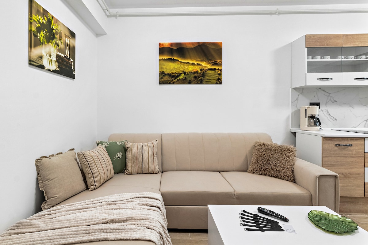 Nest Apartment, dentro del Meraki Resort & Spa, ofrece un alojamiento moderno con aire acondicionado, baño privado, un dormitorio, un sofá convertible, cocina completa, escritorio y balcón con vistas al mar. Los huéspedes disfrutan de wifi gratuito, servicios de streaming, cafetera y lavadora. Los servicios incluyen dos piscinas (en la planta baja y en la azotea), aparcamiento gratuito, ascensor, gimnasio, check-in/out exprés. A solo 9 minutos a pie de la playa de Mamaia y a 4 minutos en coche de LIDL y Mega Image. Perfecto para una estancia relajante con vistas al mar y terraza.