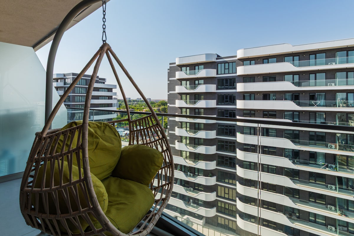Nest Apartment, dentro del Meraki Resort & Spa, ofrece un alojamiento moderno con aire acondicionado, baño privado, un dormitorio, un sofá convertible, cocina completa, escritorio y balcón con vistas al mar. Los huéspedes disfrutan de wifi gratuito, servicios de streaming, cafetera y lavadora. Los servicios incluyen dos piscinas (en la planta baja y en la azotea), aparcamiento gratuito, ascensor, gimnasio, check-in/out exprés. A solo 9 minutos a pie de la playa de Mamaia y a 4 minutos en coche de LIDL y Mega Image. Perfecto para una estancia relajante con vistas al mar y terraza.