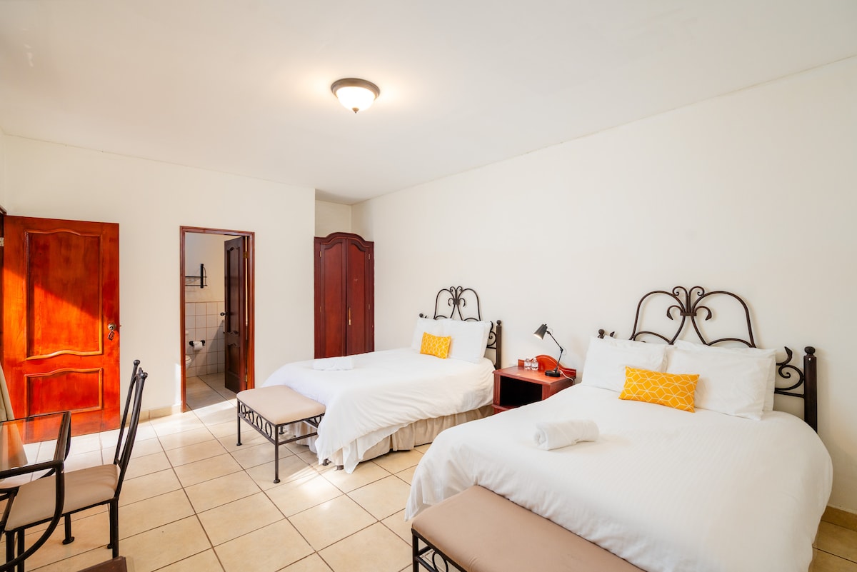 Great for groups, families, sports teams-- this listing offers 5 bedrooms located on the main floor all with ensuite bathrooms, A/C, and Wi-Fi. Includes access to an open kitchen, lounge area, swimming pool and garden seating. Also includes 4 rooms located on the second floor. Located in a safe, central neighborhood next to the MetroCentro Shopping Centre, with easy access to transport, shops, and restaurants. Quiet, clean, and comfortable with optional airport pickup and local support.