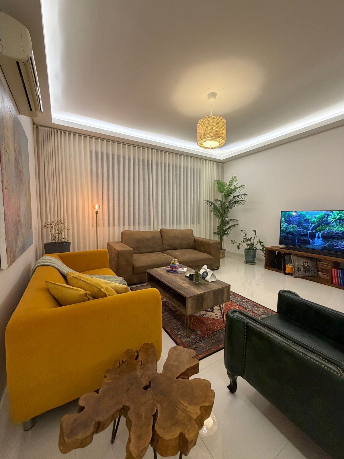 ¡Lleva a toda la familia a este espacioso apartamento de 3+1 dormitorios en el corazón de Seef! Con una amplia sala de estar, cocina completa, cómodos dormitorios y un cuarto de servicio, es perfecto para familias. Disfruta de wifi rápido, plazas de aparcamiento🚗, cafetera☕, zona de lavandería 🧺y todos los elementos esenciales. Supermercado🛒, lavandería y barbería están a solo unos pasos con servicio de entrega. A minutos de los mejores centros comerciales y atracciones: tu elegante alojamiento para familias en Baréin. ¡Seguro, céntrico y diseñado para la comodidad! 🏡