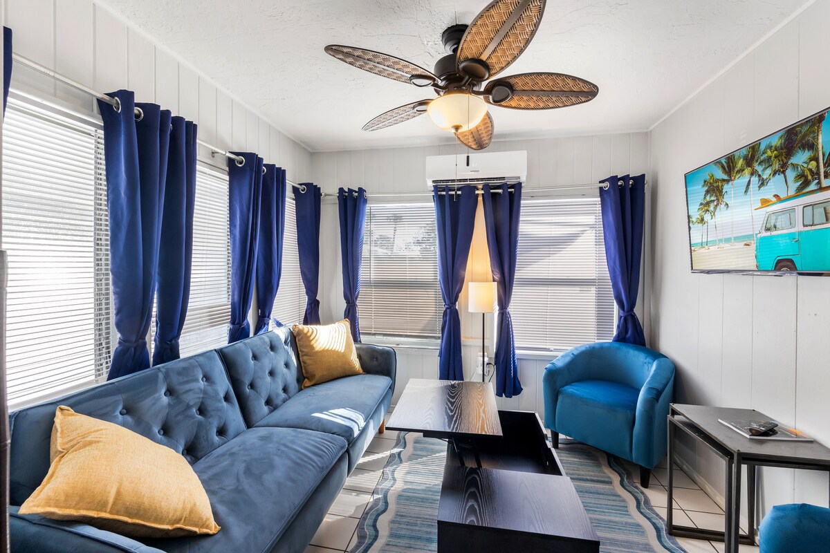 ¡Te damos la bienvenida a Peacock Way! Este encantador dúplex de 1 dormitorio está escondido en la tranquila Peacock Lane para una fantástica escapada a la isla con piscina privada. El alquiler de estilo casa de campo en la planta baja ofrece una amplia sala de estar con cocina totalmente equipada y zona de desayuno bistro. La propiedad tiene capacidad para un total de 4 personas, con el dormitorio king y el sofá de la sala de estar que se puede convertir en una cama de tamaño completo. ¡Disfruta de todos los muebles nuevos después de la reciente remodelación completa!