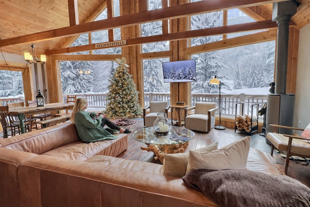¡Te damos la bienvenida a nuestro lujoso Après Chalet! Bellamente renovado pensando en el diseño y la comodidad, estamos encantados de darte la bienvenida a nuestro magnífico chalet con vistas increíbles, diseño interior de lujo y servicios que complacen a la multitud (bañera de hidromasaje al aire libre, sauna de barril, chimenea y más). Este hermoso y privado terreno está rodeado de pinos maduros con increíbles vistas al esquí EVL. Fácil acceso al centro de Ellicottville (4 minutos) y a pistas de esquí, senderismo/ciclismo de montaña, descensos en neumático, golf y mucho más (4-8 minutos).