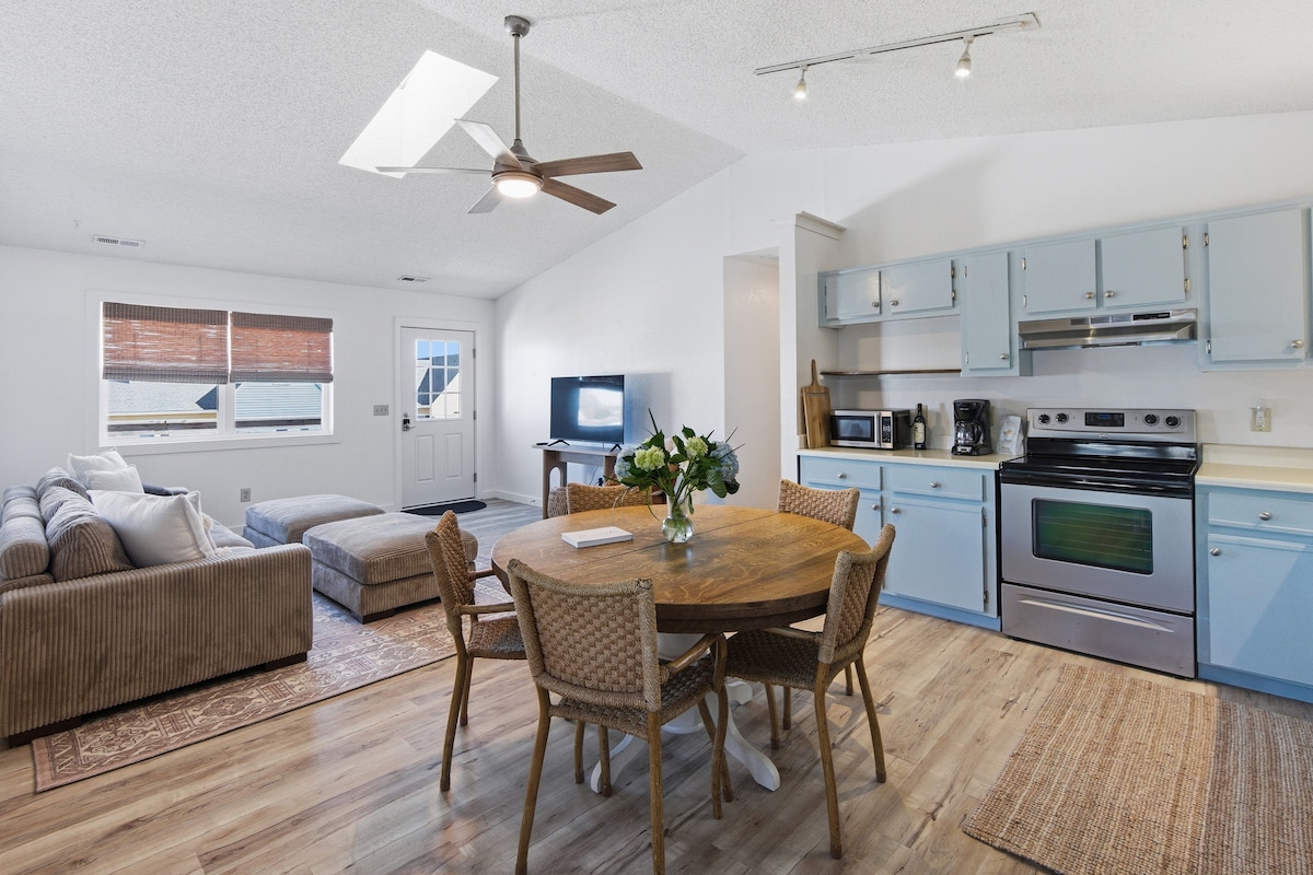 Cabaña acogedora y bellamente decorada con TODAS las comodidades de playa que tu corazón podría desear: sillas, flotadores, bicicletas, carrito rodante, tablas de boogie, kayak, juguetes de arena, parrilla, etc. Acceso privado a la playa junto al mar a solo unas casas de distancia, media cancha de baloncesto, wifi, aparcamiento gratuito, acceso a senderos para bicicletas y tiendas cercanas, kayak, hermosas vistas y mucho más. ¡Duck, Carolina del Norte, es la parte más perfecta de los OBX para vacacionar!