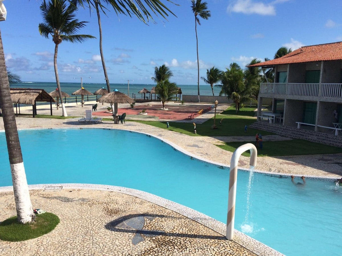 Chalet frente al mar en el Condominio Village Galés, Maragogi (AL). En el apartamento tenemos: - dos suites completas con balcones y hamacas; - salón y cocina totalmente equipados; - filtro central, aire, ducha eléctrica, Wi-Fi, Smart TV, SKY; - Ropa de cama y baño desinfectada. En el condominio tenemos: - gran terraza y piscina de 560 mil litros (adultos y niños); - acceso privado a la playa. Mar de aguas cristalinas; - Pista polideportiva, sala de juegos, parque infantil y hamaca.