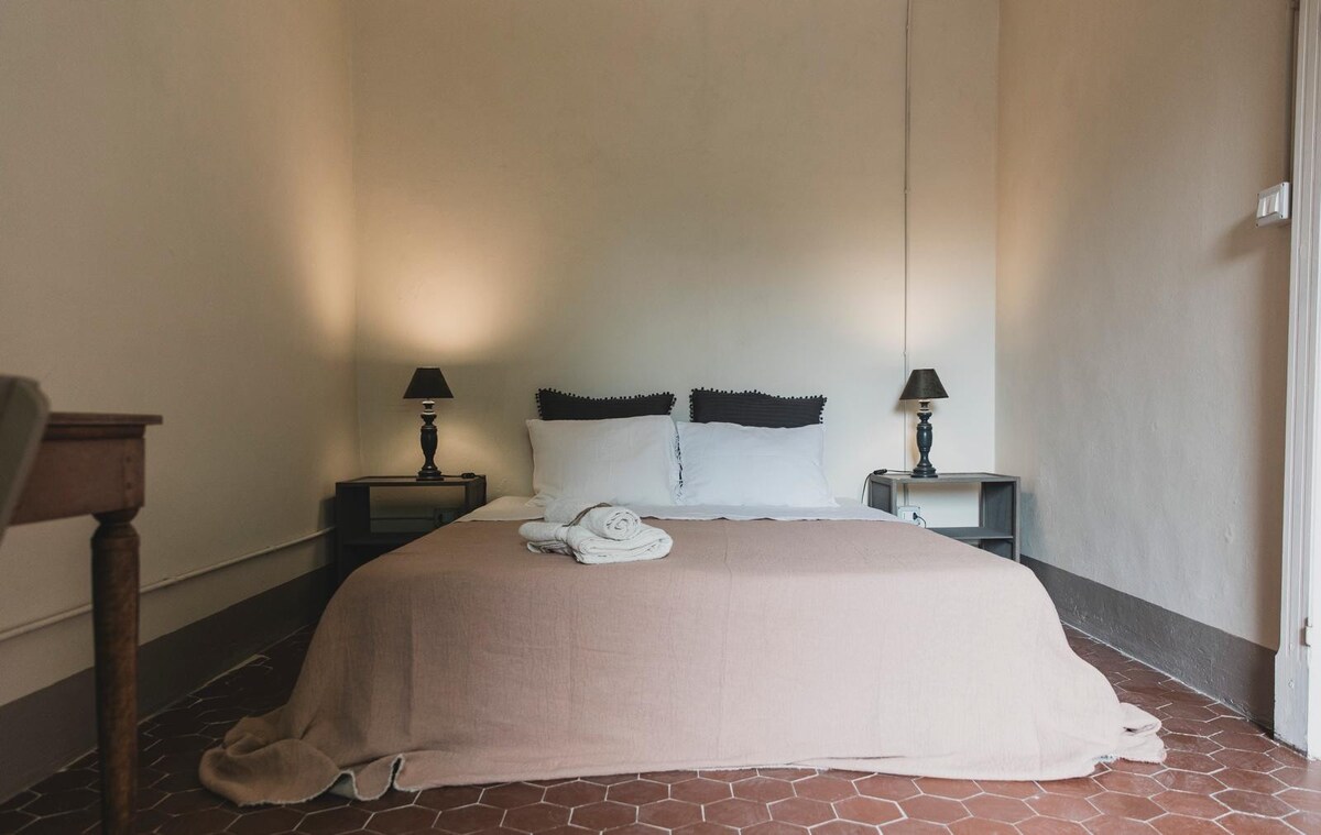 La habitación tiene 26 metros cuadrados, con una cómoda cama doble, piscina y vistas al jardín, dos sillones, un pequeño escritorio, un armario para guardar ropa y una librería con volúmenes disponibles para leer. El baño, justo fuera de la habitación (literalmente al lado), luminoso con vistas al jardín, es privado. Hay una pequeña nevera en tu habitación.