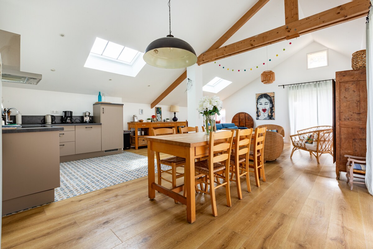 ¿Buscas un alojamiento cómodo para 2 personas en un pueblo cerca del mar? ¿Tal vez te interesa la ecología? The Artists Den es perfecto para ti todo el año. El apartamento vacacional está situado en el centro del encantador pueblo de Wimille, a unos 2 km de la costa. Es independiente, con acceso privado, terraza soleada y un gran jardín cultivado sin pesticidas. Hay 2 bicicletas disponibles para ir a la playa y una estufa de leña te mantendrá acogedor cuando haga frío al aire libre.