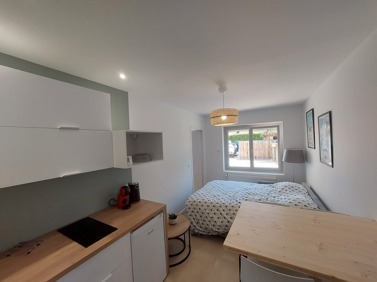 En la tranquilidad del jardín de nuestra casa familiar, hemos rehabilitado un edificio anexo en dos bonitos estudios muy luminosos. Encontrará todas las comodidades: aire acondicionado, cocina equipada, WIFI... Cuando hace buen tiempo, disfrute de un espacio al aire libre. A 10 minutos a pie del centro de Tassin (tiendas, correos...) estará en una zona residencial de casas antiguas de principios del siglo XX rodeadas de grandes jardines. Un poco de aire de campo tranquilo a 15 minutos del centro de Lyon.