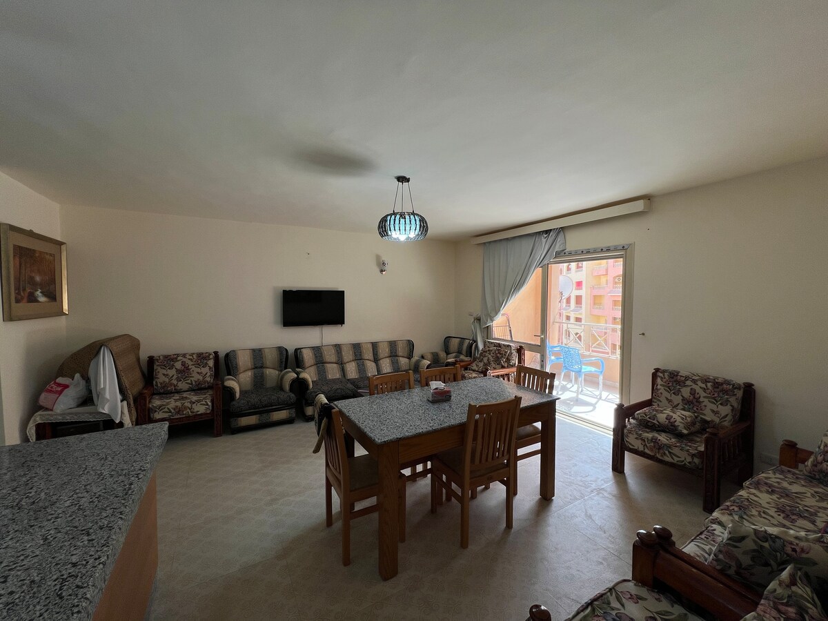 Bienvenido a nuestro encantador apartamento de 2 dormitorios, perfectamente situado en la hermosa costa norte de Egipto. Esta joya céntrica ofrece un paisaje impresionante y acceso directo a tres refrescantes piscinas, incluida la piscina principal justo enfrente de nuestro apartamento. A las familias les encantará nuestra zona infantil dedicada y el campo de fútbol, perfectos para mantener entretenidos a los pequeños. ¡Reserva tu estancia con nosotros y experimenta lo mejor de la belleza y la comodidad de la costa norte!