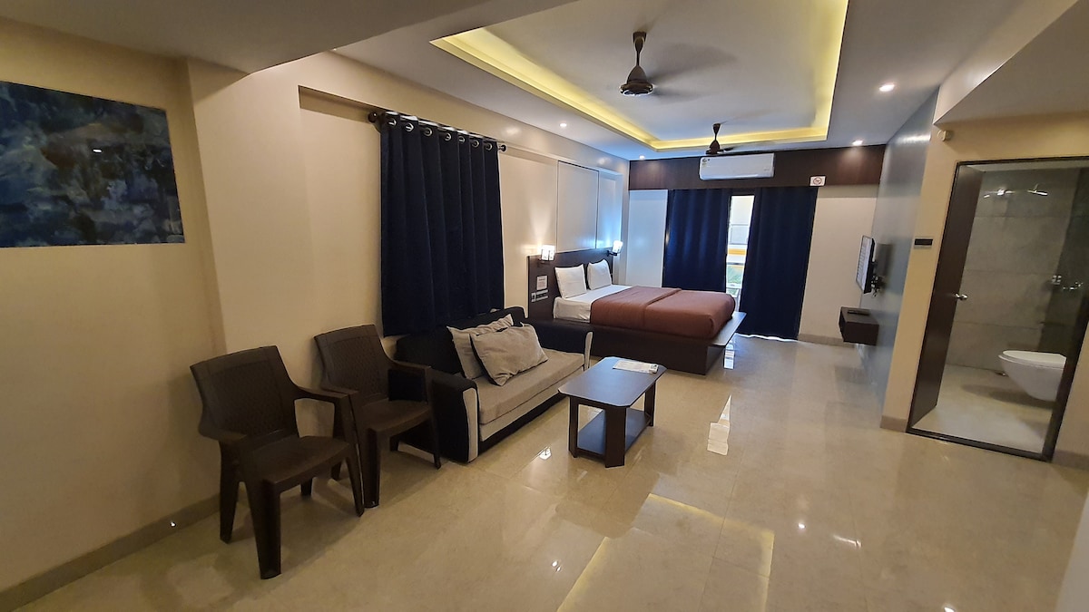 Ventajas de la suite. Ubicación:- • Situado justo en el corazón de Goa (Calangute), donde está la famosa vida nocturna de Goa. • A 5 minutos en coche de Baga Beach y Tito's Lane Amenidades de la propiedad:- • Seguridad 24x7 •2 ascensores •2 piscinas con jacuzzi • Gimnasio con baño turco y sauna • Sala de juegos • Jardín paisajístico Acerca DE LA suite:- •Apto para niños • Cocina totalmente funcional. • Respaldo de energía 24x7 •Amplio salón •Dormitorio de lujo Amenidades de la suite:- • ¡Lavadora! • ¡2 televisores XL! • ¡Wifi de alta velocidad! • ¡Espacio de trabajo personal!
