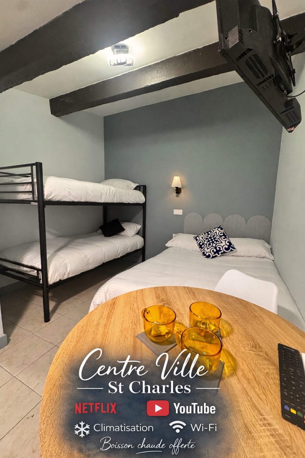 Bienvenido a MOUCHKI, en el corazón de Marsella. Descubra nuestros 6 MOUCHKIROOM, cada habitación con un ambiente único, ideal para una estancia en pareja. Disfrute de la comodidad del hotel y de la autonomía de un alquiler de temporada. Aire acondicionado, tv, cafetera Nespresso, hervidor de agua y escritorio para su comodidad. Perfectas para viajes de negocios o escapadas románticas. No dude en mirar en nuestros anuncios nuestras habitaciones que son todas únicas. ¡Estamos deseando darle la bienvenida!