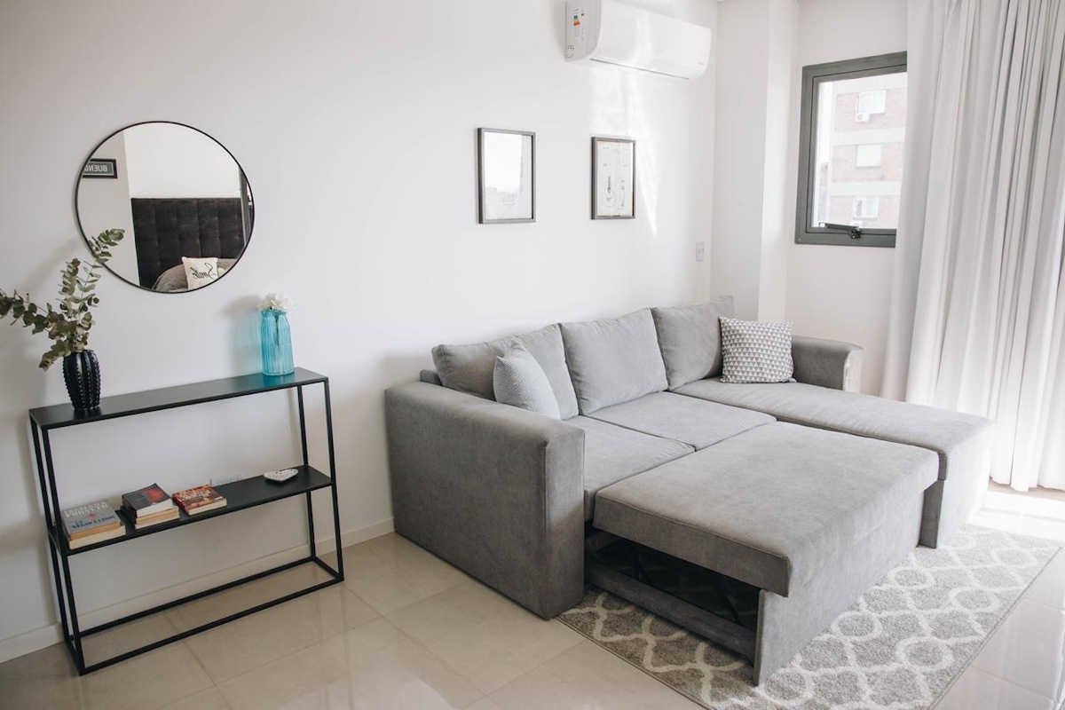 Increible y hermoso monoambiente luminoso con balcon totalmente equipado para 4 personas. Este encantador apartamento tiene todo para que disfrutes tu estadia de forma confortable !!! Posee un sommier de 2 plazas y un sillon/sofa cama para 2 personas. Amoblado con diseño, encanto y buen gusto. Aire acondicionado frio/calor, TV HD/cable, WI FI. Rapido acceso a los principales puntos de la ciudad, subterraneo linea D, Tren Mitre, Metrobus, centros comerciales y gastronomicos.