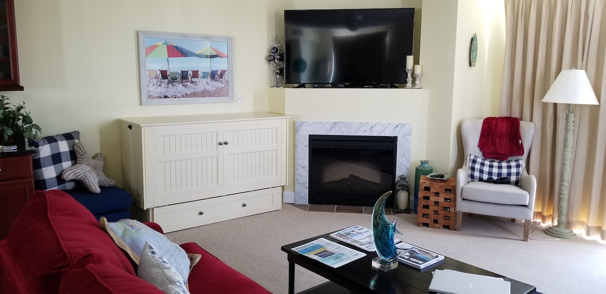 Disfruta del amanecer en la playa con café en el balcón y vino en la bahía. Todos sin salir del apartamento. Pared a pared, ventana de piso a techo y balcón con vistas a la playa, y todas las demás actividades. Piscina cubierta, sauna, gimnasio, solarium y sala de juegos. Hora de verano Tiki bar, voleibol de playa, piscina al aire libre, playa privada, bola de pepinillos y tabla de barajar. Patio común HUGEcommon, y tiendas. Estudio tiene cama queen murphy y sofá cama. Ver fotos de camas abiertas. Lavadora/secadora y cocina completa con lavavajillas en la unidad!