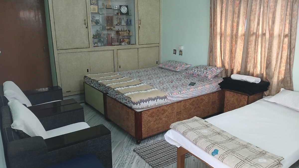 «Descubre el encanto de Kashi en nuestra tranquila casa de familia en Shivpur, con 2 dormitorios privados, donde el confort moderno se une a la calidez hogareña. Recién construida y rodeada de vegetación, ofrece un refrescante refugio en Varanasi. Lo más destacado es un exuberante jardín con césped, flores y rincones sombreados, perfecto para el té de la mañana, el yoga, la lectura o el tiempo en familia. Diseñado cuidadosamente para que todos los huéspedes se sientan como en casa, es una escapada ideal para aquellos que buscan paz, comodidad y un sabor auténtico de Varanasi».